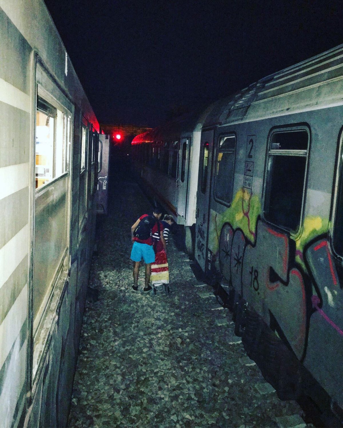 21.10 Uhr…Ankunft im Kleinstädtchen Lazarevac…er stand tatsächlich vor mir: Der Nachtzug „432 Lovcen“, eine bunte Mischung aus aus blauen, weiß-blau-roten und grünen Wagons, welche natürlich allesamt mit Graffiti beschmiert waren!