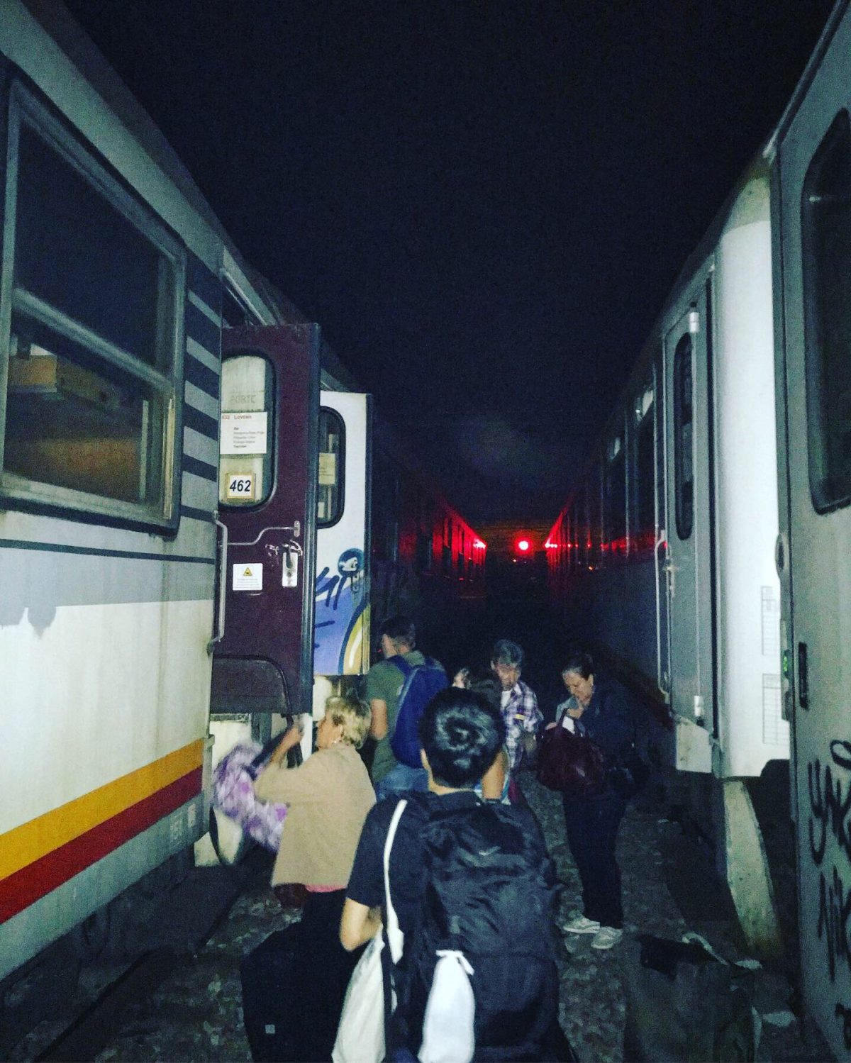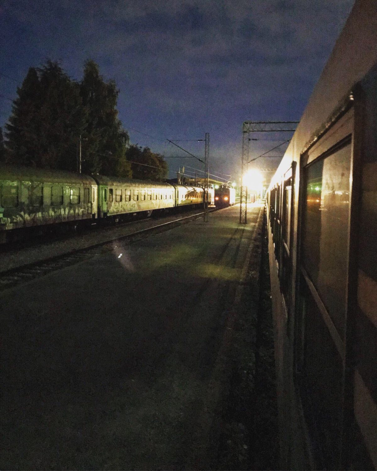 Auf der Suche nach dem Wagen mit der Nummer 462 durfte ich mit meinen Wagen- und (Leidens-)Genossen feststellen, dass der Zug zu lang für den Bahnsteig war. Also runter aufs Schotterbett und die letzten 80 Meter zu Fuß…und das bei absoluter Dunkelheit!