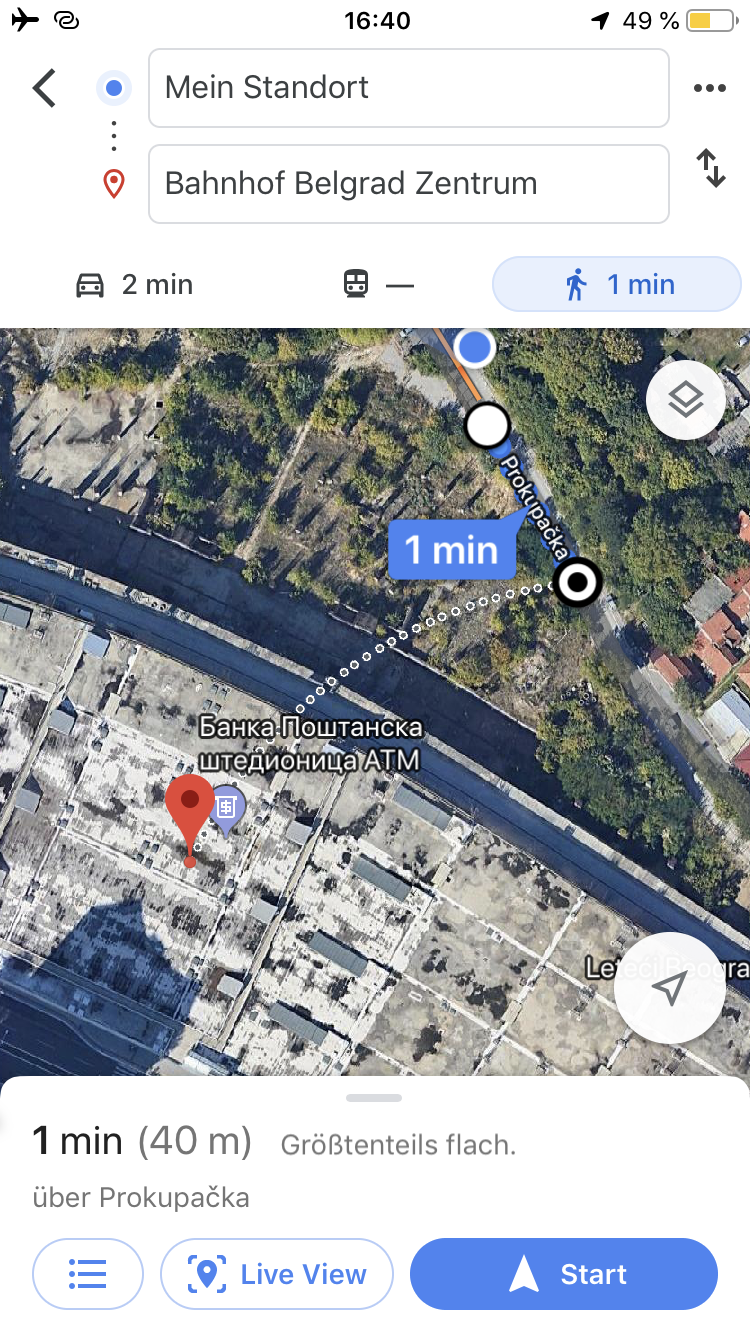 Wo war denn jetzt zum Teufel dieser letzte kleine eingezeichnete Fußweg über das Brachgelände der serbischen Bahn? Genau, nicht vorhanden, „Google Maps“ hatte mich megamäßig verarscht! Die einzige Frage, die mich zu diesem Zeitpunkt beschäftigte, war die Möglichkeit, sich schriftlich in Kalifornien zu beschweren!