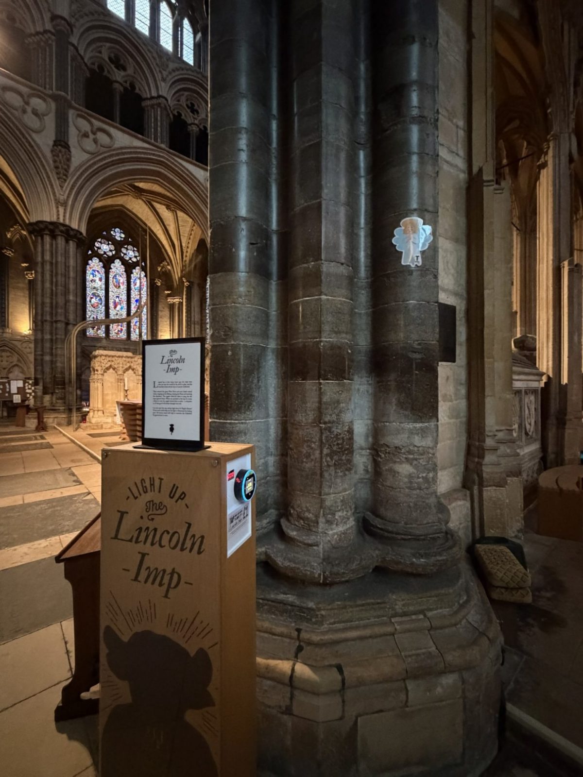 Die Steinfigur gilt heutzutage als Symbol für den Sieg des Guten über das Böse und besitzt nach wie vor einen festen Platz in der Kathedrale. Wer die Figur einigermaßen scharf sehen möchte, benötigt entweder richtig gute Augen oder eine Kreditkarte. Der Giftzwerg wurde nämlich in einen steinernen Engelschor integriert, der so hoch unter dem Dach hockt, dass man ihn in diesem kolossalen und vor allem dunklen Kirchenschiff mit dem bloßen Auge eigentlich nicht erkennen kann. Dementsprechend musste sich die geschäftstüchtige Kirchenverwaltung etwas spezielles einfallen lassen. Nach Bezahlung von einem Pfund Sterling – natürlich mittels einer kontaktlosen Kreditkarte- geht ganz weit oben ein heller Scheinwerfer an, mit dessen Hilfe auch der kurzsichtigste Mensch auf dieser Welt endlich den richtigen Durchblick erhält.