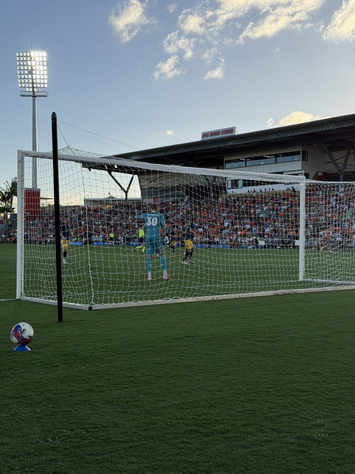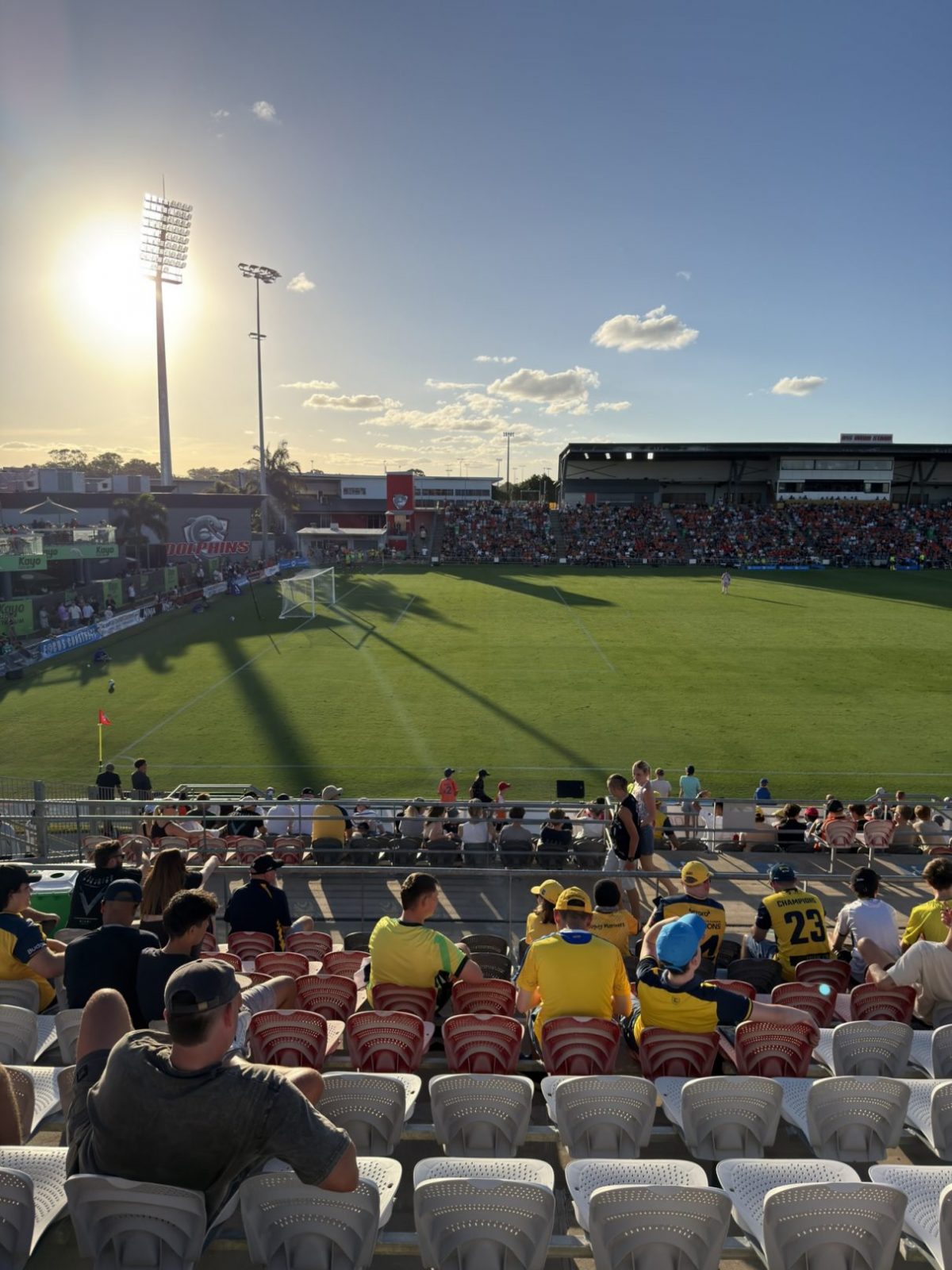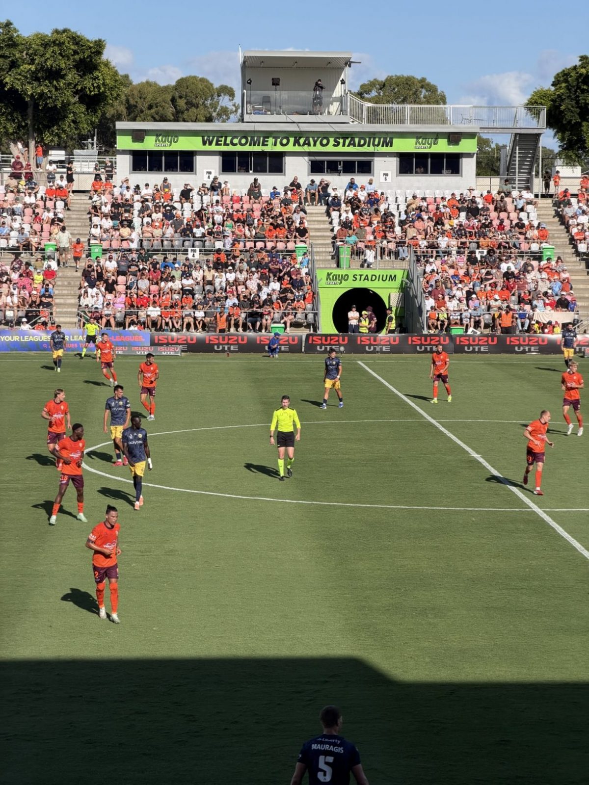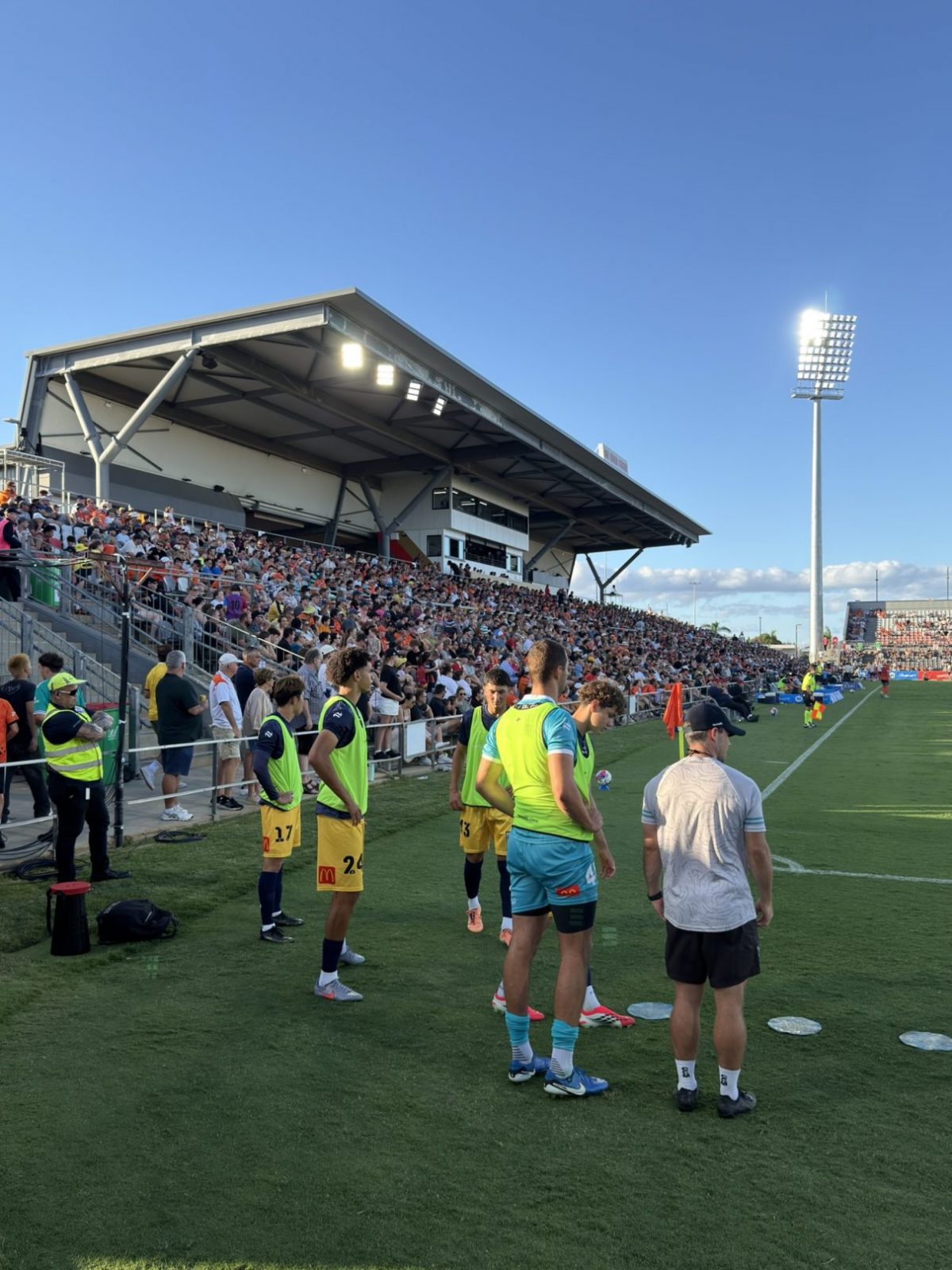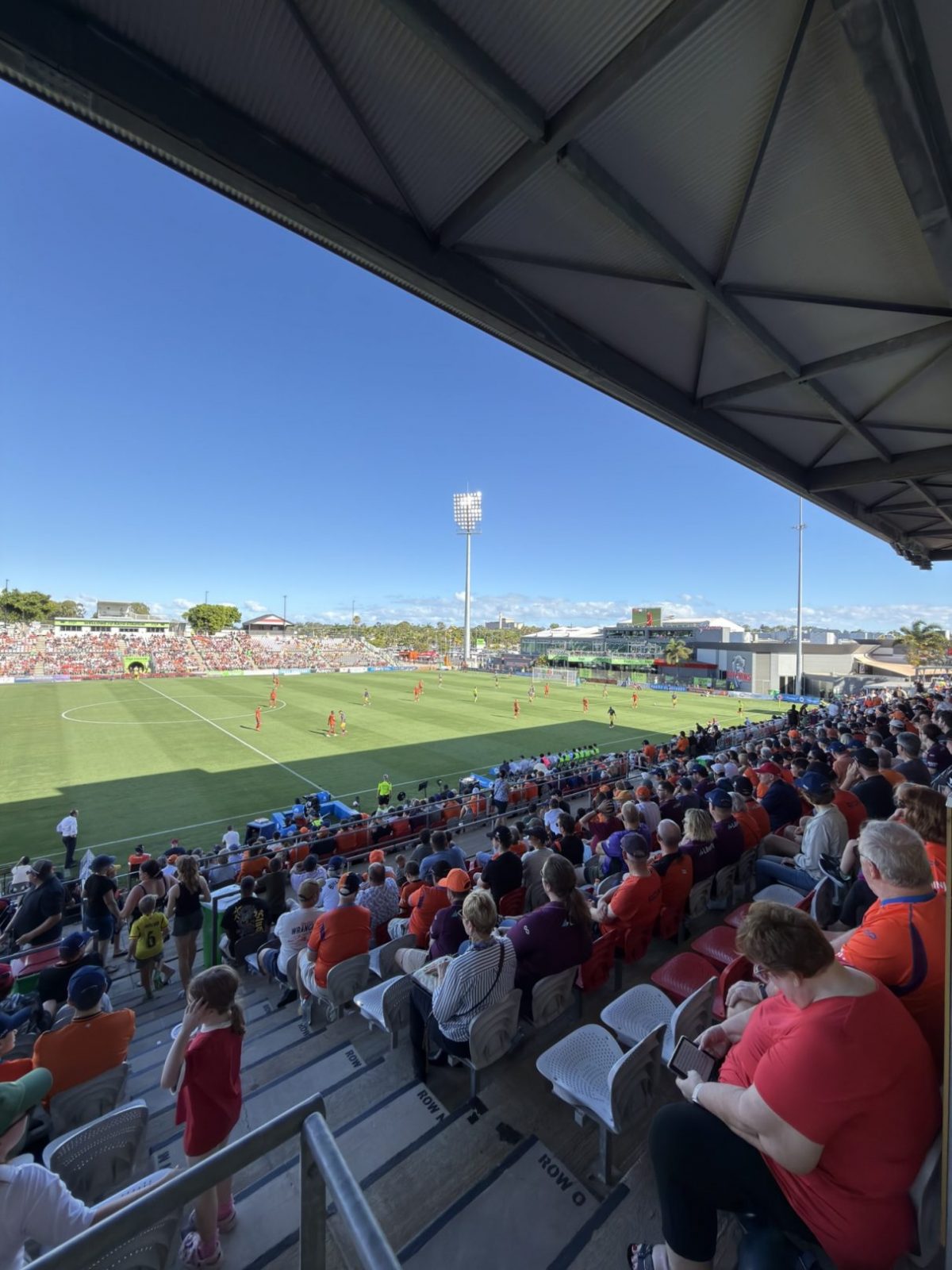 Bei Anpfiff von Schiedsrichter Lachlan Keevers herrschte im mit 5.714 Zuschauern gut gefüllten Kayo-Stadium eine richtig angenehme Fußball-Atmosphäre. Offensichtlich fühlten sich viele Zuschauer weitaus wohler als im weitläufigen „Suncorp-Stadium“.