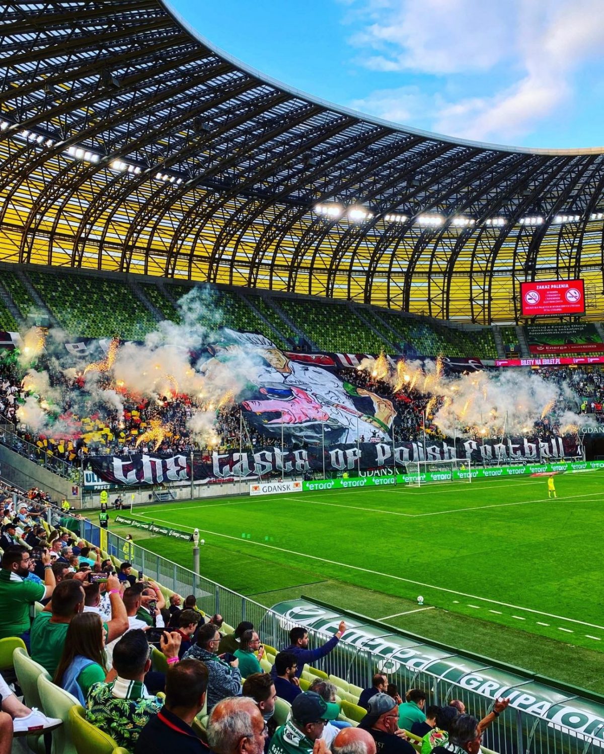 Schon damals war ich von dem hochmodernen sowie individuellen „Bernstein-Stadion“ vollends begeistert, vermutete aber schon während des Spiels, dass die Arena für künftige Spiele des heimischen Clubs Lechia Gdansk in der polnischen PKO Ekstraklasa mit einem Fassungsvermögen von 41.620 Plätzen etwas überdimensioniert sein könnte.