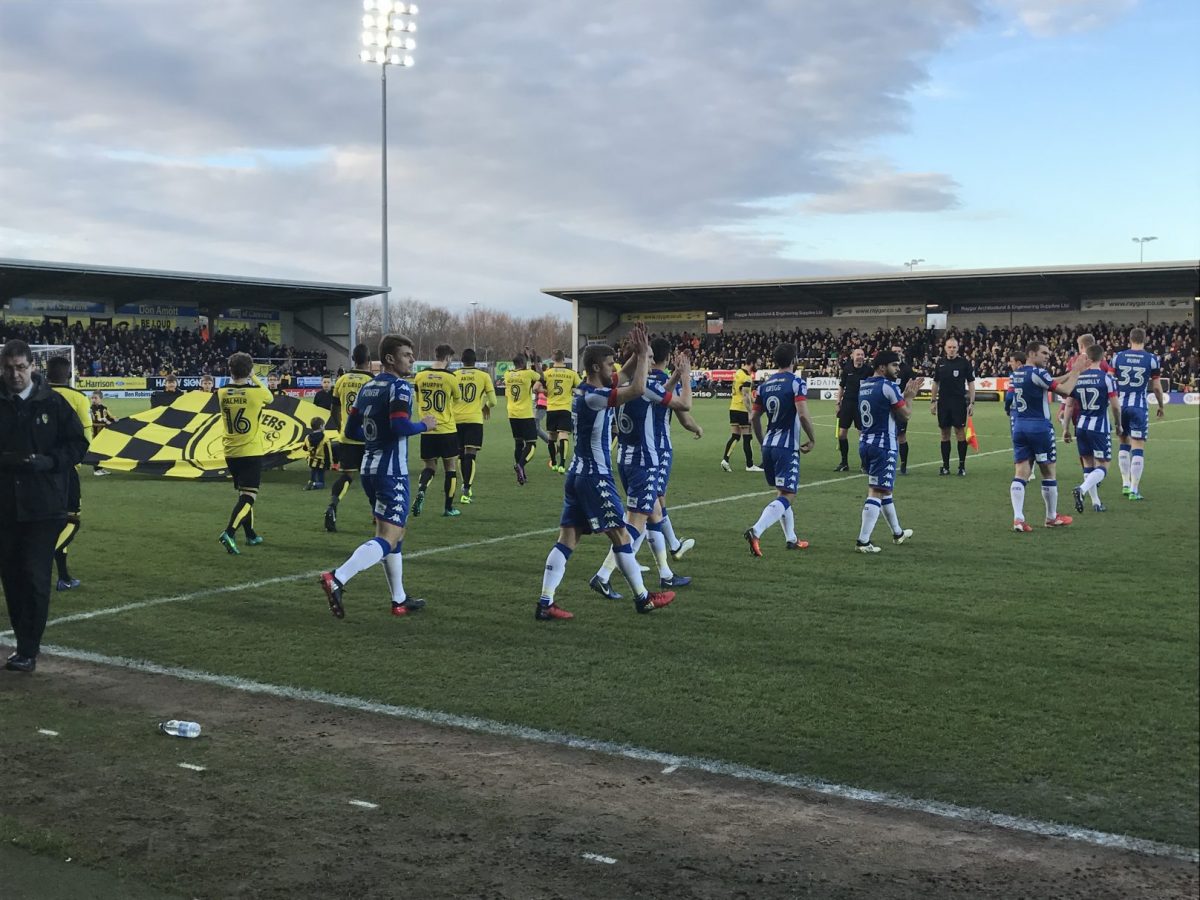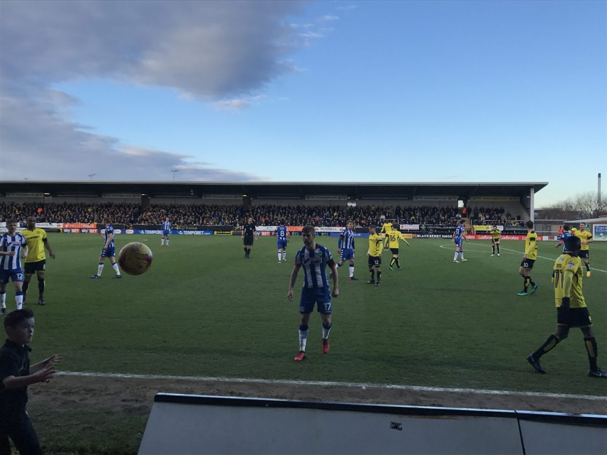 Trotz der schlechten Platzierung beider Teams und einer zu erwartenden Abtastphase ohne Risiko entwickelte sich ein flottes und kampfbetontes Spiel, in welchem der Gast aus Wigan klare Vorteile besaß. Vor 4411 Zuschauern gewann der Gast aus Wigan verdient und souverän mit 2:0 (1:0). Beide Tore erzielte der englische U19-Nationalspieler Callum Connolly, welcher erst wenige Stunden vor dem Spiel vom Everton FC ausgeliehen wurde. Dieser Transfer war so frisch, dass er nicht einmal bei Transfermarkt.de aktualisiert wurde. Stürmerstar Will Grigg möchte ich eine insgesamt gute Leistung attestieren, ständig anspielbereit und sehr kämpferisch. Obwohl er leider nicht traf, war er für mich dennoch voll „on fire“.