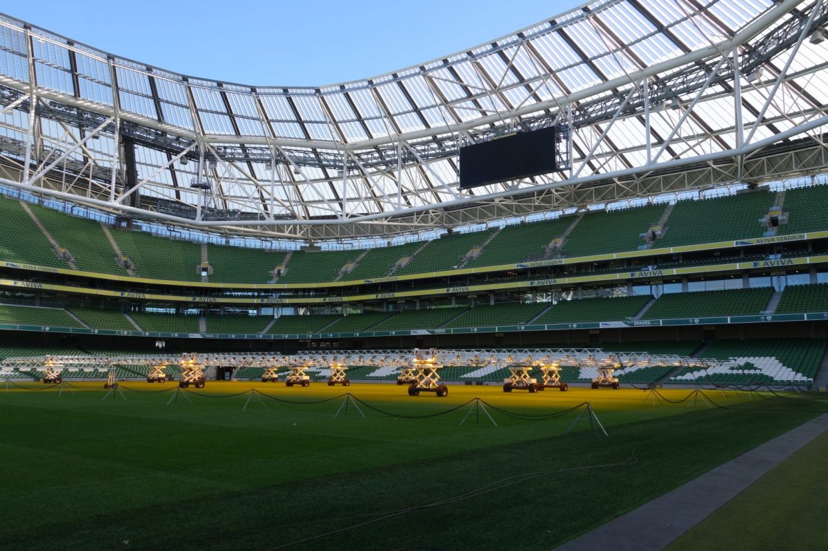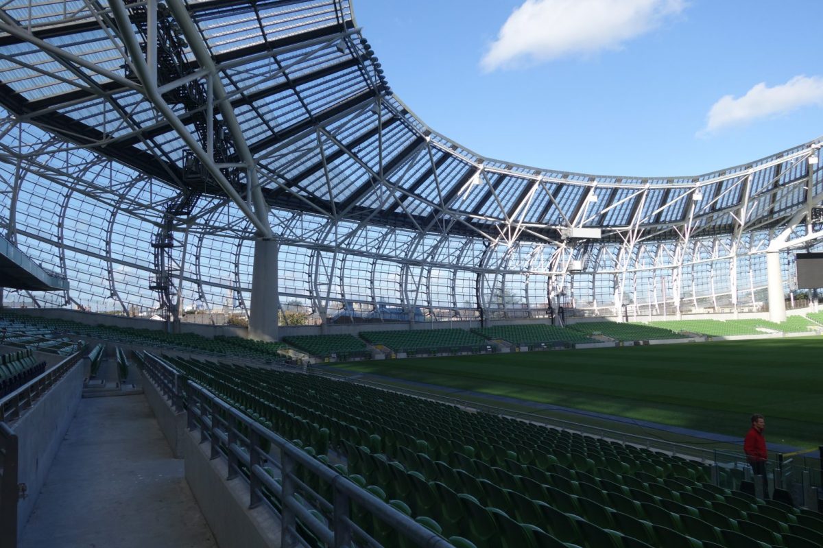 Abschließend ging es zur Einstimmung auf das Spiel zum Nationalstadion Irlands, dem bereits erwähnten Aviva-Stadium. Die Arena an der DART-Station Lansdowne Road wurde im Jahr 2010 eingeweiht und gilt für die Sportarten Fussball und Rugby als Heimat. Mit einem Fassungsvermögen von 51.700 Zuschauern ist das Aviva-Stadium nach dem für Gaelic-Football erbauten Croke-Park (Fassungsvermögen 80.000 Zuschauer) das zweitgrösste Stadion Irlands. Da ich bereits zum UEFA-Europa-League Finale 2011 zwischen dem FC Porto und Sporting Braga vor Ort sein durfte, war es der perfekte Ort für den Blick hinter die Kulissen.