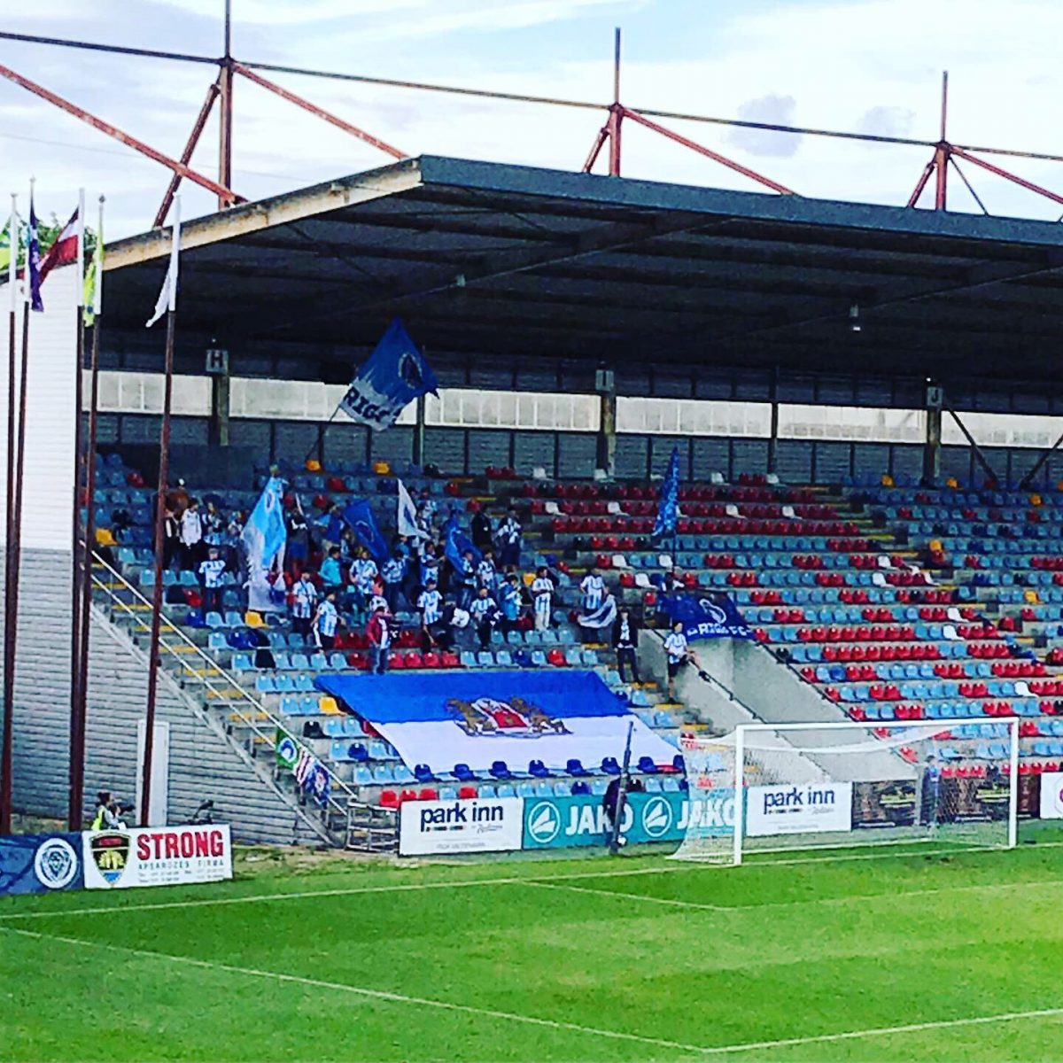 Ich entschied mich zunächst für eine Bestandsaufnahme beim „neuen“ Hauptstadtverein, dem Riga Football Club! Der geht zwar nicht als direkter Rechtsnachfolger des FC Skonto durch…wurde aber auch erst nach der Skonto-Pleite im Jahr 2014 gegründet! Nach dem systembedingten Start in der lettischen 3. Liga gab es den direkten Durchmarsch ins Oberhaus…hier gewann die Mannschaft unter der Führung des ehemaligen Bremer Trainers Viktor Skripnik in der Saison 2018 sofort das Double aus Meisterschaft und Pokal! Ein besseres Ergebnis als die Qualifikation zur UEFA Champions League kann man in der Premierensaison wohl nicht einfahren! Die anschließende Europapokal-Qualifikation nach meinem Besuch erlebte der gute Skripnik aus unbekannten Gründen aber schon nicht mehr mit. Nach dem Gewinn der ersten beiden Titel verließ er den Verein, wie man hört, nicht unbedingt in beidseitigem Einvernehmen!