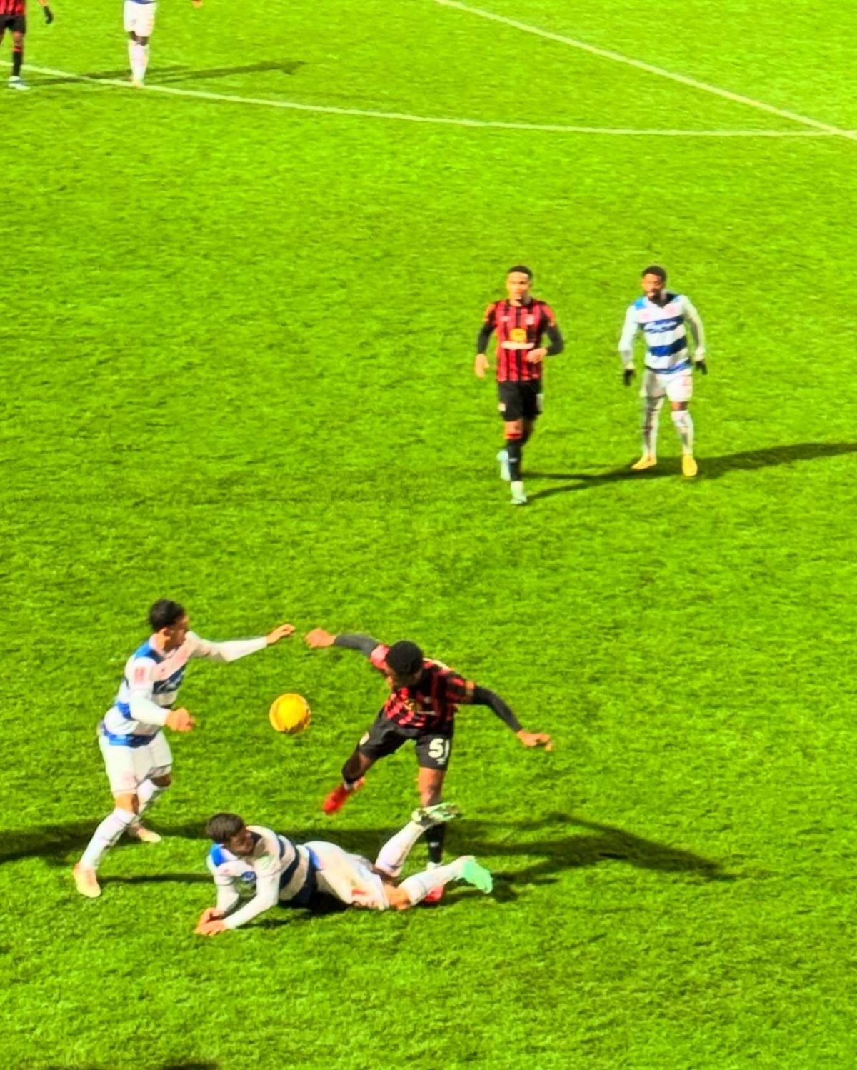 Nach Anpfiff von FIFA-Schiedsrichterin Rebecca Welch, welche Ende des vergangenen Jahres als erste Frau überhaupt ein Premier League-Spiel leiten durfte, kamen die Gastgeber recht gut ins Spiel und boten dem Erstligisten von der englischen Südküste erstaunlich viel Paroli. Obwohl die Gäste mit ihrer routinierten Spielanlage die Kontrolle behielten, gelang es QPR immer wieder, mit Direktspiel und konsequenten Steilpässen auf den blitzschnellen Stürmer Sinclair Armstrong Nadelstiche zu setzen. Einer dieser Nadelstiche führte fünf Minuten vor der Halbzeit zur etwas unerwarteten Führung, als der angesprochene irische U21-Nationalspieler einen Konter abschloss und eiskalt für den Underdog vollstreckte.