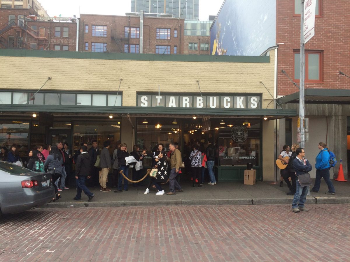 Die besitzt im Umfeld des Pike Place Markets ihre aller-aller-aller-erste Filiale aus dem Jahre 1971. Dies wirkt bei der Fülle der mittlerweile bestehenden abertausenden Filialen rund um den Globus irgendwie unwirklich. Zumindest solange, bis man sich dort für einen Kaffee anstellt. Der schmeckt dann nach einer Wartezeit von knapp 30 Minuten genauso wie in der Filiale in Bochum. Aber scheiss drauf, der erste „Starbucks“ ist nur einmal im Jahr. Nach dem Kaffee sollte man es dann aber auch nicht versäumen, unbedingt noch den Pike-Markt zu besuchen, man wird mit Leckereien aus der ganzen Welt verwöhnt. Sicher nicht billig, aber gucken kostet ja auch nichts.
