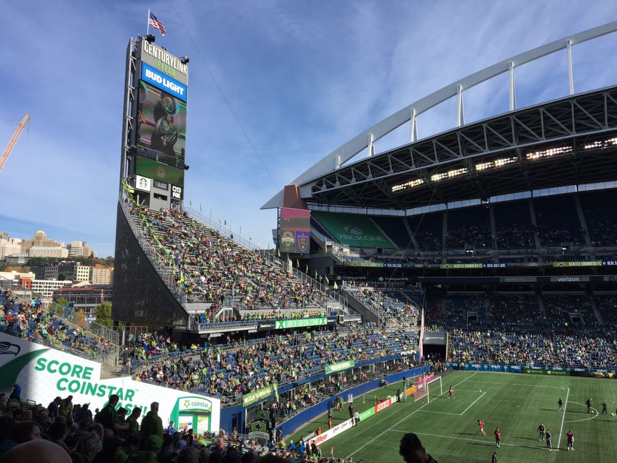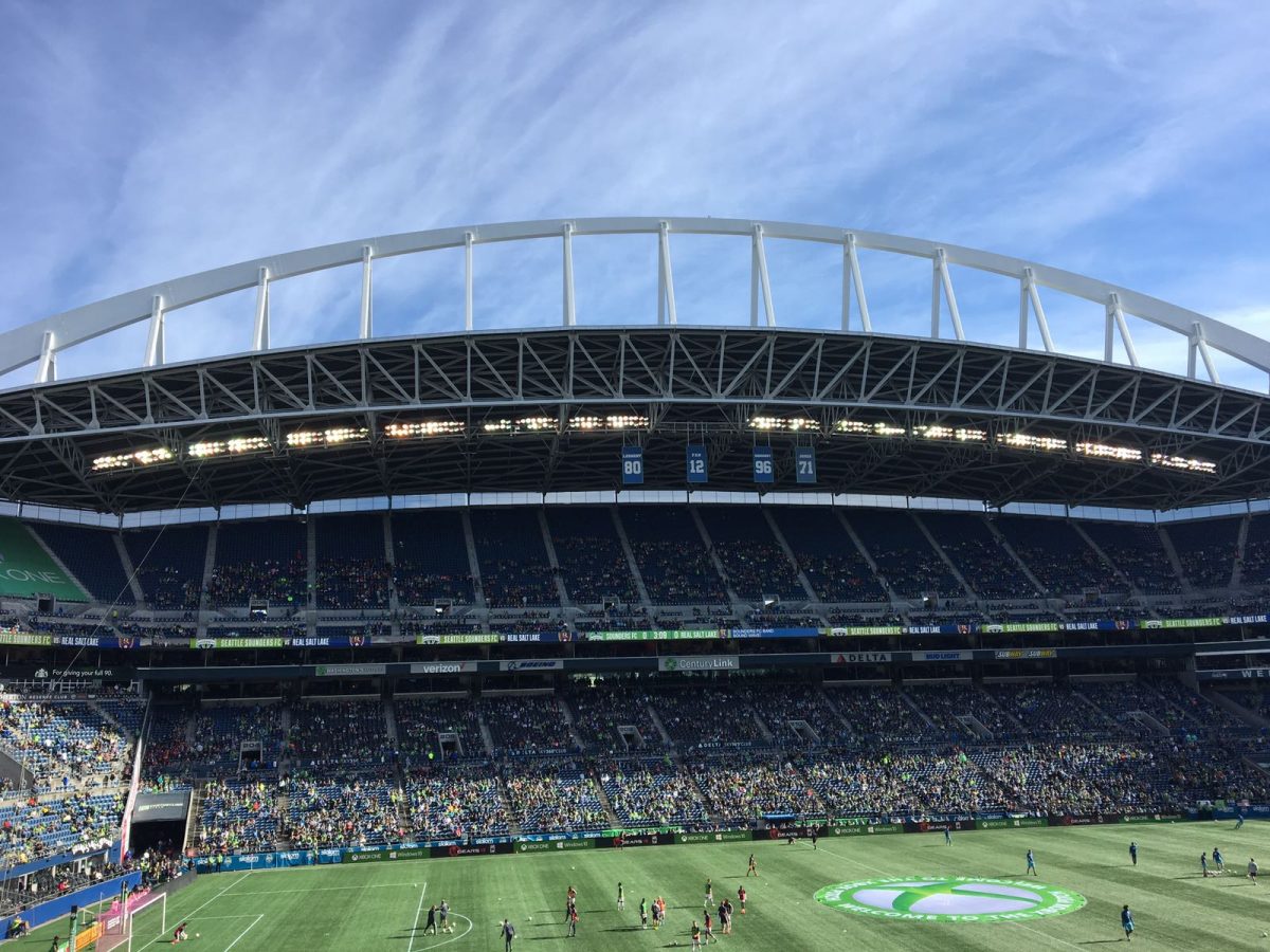 Kommen wir nun einmal mehr zum Fußball, in Nordamerika auch Soccer genannt. Da denkt man minutenlang über die perfekte Überleitung vom Thema Sightseeing nach und kommt einfach nicht drauf. Dabei war es doch so einfach. Die Space Needle ist natürlich Bestandteil des Wappens des einheimischen Seattle Sounders Football Club!