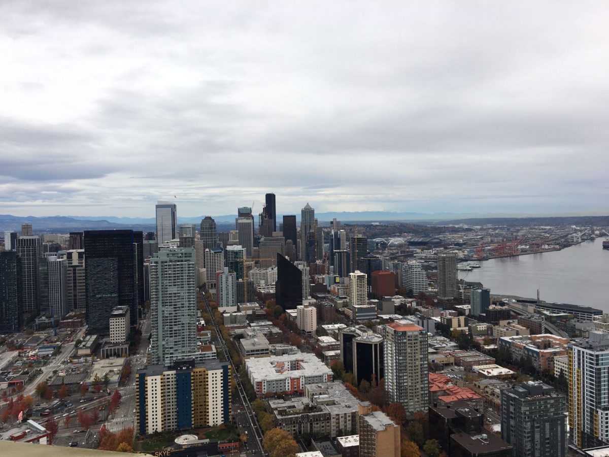 Das Thema Sightseeing, welches in Seattle recht vielschichtig ist, möchte ich mit dem Besuch des Wahrzeichens der Stadt abschließen. Dabei handelt es sich um die Space Needle („Weltraumnadel“), ein 184 Meter hoher Aussichtsturm, der aus der Skyline der Stadt nicht wegzudenken ist. Der Turm wurde anlässlich der Weltausstellung 1962 erbaut und verschafft dem Besucher einen atemberaubenden Ausblick auf den Lake Washington, den Puget Sound und die übrigen Gebäude der Stadt. Auch hier gilt das alte amerikanische Motto, „Was ist mir der Besuch wert?“. Bei „normalem“ Besuch muss der Aufzug und Eintritt bezahlt werden (ca. 20 Euro). Als Geheimtip gilt der Besuch des Restaurants der Space Needle, oberhalb der Aussichtsplattform. Der separate Aufzug ist kostenlos, dafür gibt es Gerichte ab umgerechnet 30 Euro aufwärts, eine Reservierung ist erforderlich. Der Turm befindet sich im sogenannten „Seattle Center“, einer Art neuem Zentrum mit weiteren Attraktionen wie einem IMAX-Kino und diversen Museen. Ich empfehle vom eigentlichen Stadtzentrum „Downtown“ die kurze Fahrt mit dem „Monorail System“, eine Art Schwebebahn auf Schienen, ebenfalls aus den 60er Jahren und irgendwie nostalgisch.