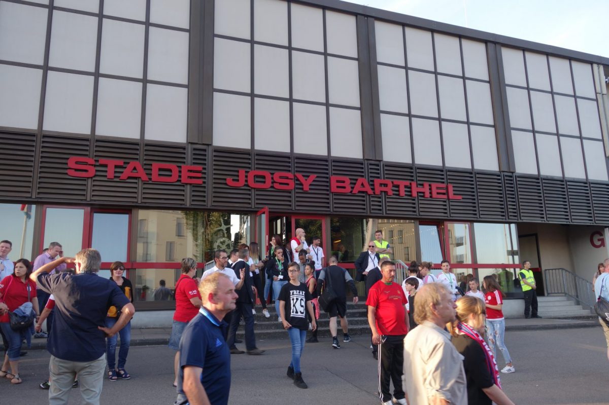 Nach einer primären Kontaktaufnahme mit den dort feiernden ca. 300 Anhängern des schottischen Traditionsvereines ging es zu Fuß zum Stade Josy Barthel, dem bereits genannten Nationalstadion Luxemburgs. Das ist aus der Innenstadt innerhalb eines ca. 15-20minütigen Spazierganges erreichbar und verursacht bei dem ersten Blick ein leichtes Schmunzeln.