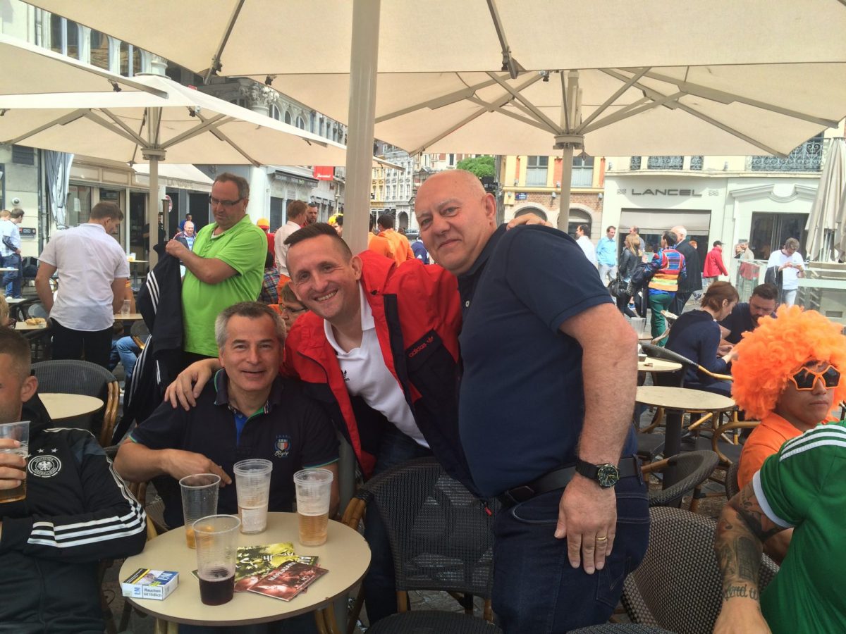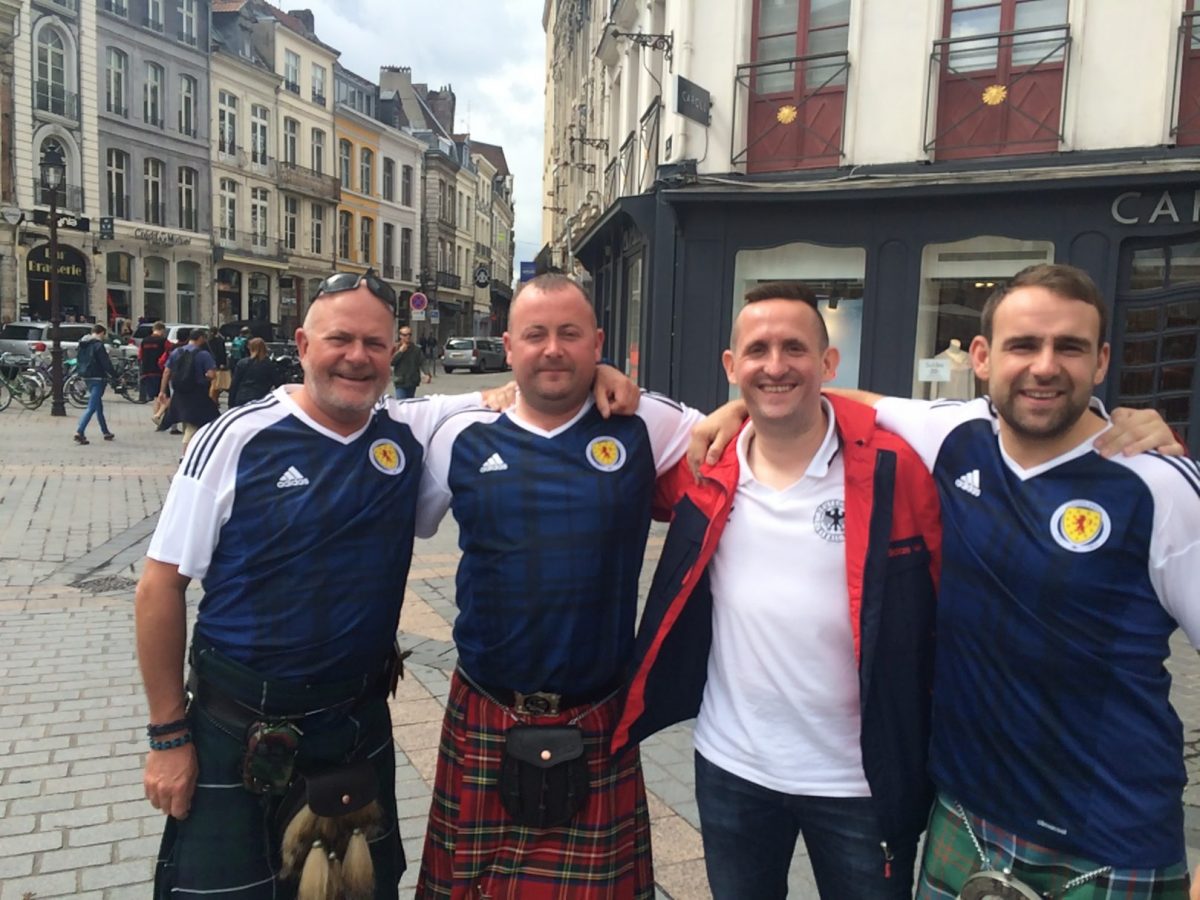 Der anschließende Besuch in der Innenstadt von Lille war letztlich das Highlight der Kurzreise. Hier konnte man erleben, dass die europäische Einigkeit trotz der bestehenden politischen Probleme keine Utopie sein muss. Eine tolle Atmosphäre mit EM-Besuchern aus Deutschland, Belgien, Frankreich, der Slowakei, England und Schottland. Sogar ein paar Fans der Niederlande waren mit einer eigenen „Fanzone“ am Start, obwohl ihr Oranje-Team bekanntermaßen nicht mitspielt. Das nennt man dann wohl Spass am Fußball und vor allem am Leben. Eine der besten Stimmungen, die ich je vor einem Spiel erlebt habe. Es machte einfach nur Lust mit all den Fans aus unterschiedlichen Nationen ins Gespräch zu kommen und sich über Fußball auszutauschen. Nur die spärlich vorhandenen Toiletten rund um den Place de General de Gaulle machten das Biertrinken nicht durchgehend zum Genuss.