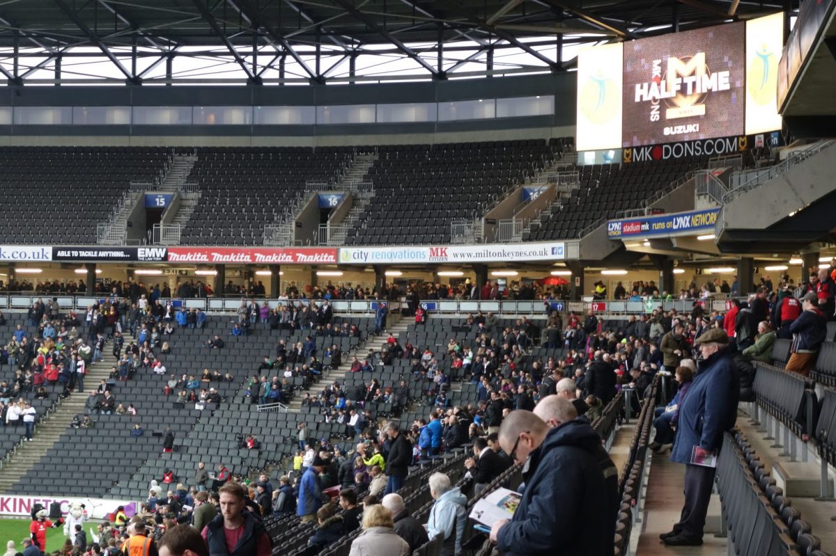 Nach Buchung einer günstigen Zugfahrkarte war ich der Meinung, bestens vorbereitet zu sein. Zumindest bis zum Vorabend des Spiels. Nur aufgrund der Tatsache, dass das Spiel auch in Deutschland durch diverse Medien wie die Sportschau thematisiert wurde, erhielt ich zufällig eine nicht ganz unwichtige Information. Das Spiel wurde durch die English Football League kurzfristig von der geplanten und üblichen englischen Anstoßzeit 15 Uhr um zwei Stunden auf 13 Uhr vorverlegt. Zum Glück besaß ich „flexible“ Zugtickets mit der Möglichkeit, ein wenig früher nach Milton Keynes zu reisen. Die kurzfristige Vorverlegung eines vermeintlichen Risikospiels wird in England gerne praktiziert. Begründet werden diese Maßnahmen damit, dass Auswärts- sowie Heimfans vor dem Spiel weniger Zeit haben, einen Pub nach der Öffnung um 11 Uhr aufzusuchen. Somit ist die Chance geringer, dass es zu alkoholbedingten gewalttätigen Ausschreitungen kommen kann. Ob die Gewaltdelikte bei Fußballspielen aufgrund dieser Vorgehensweise zurückgingen, ist mir leider unbekannt.