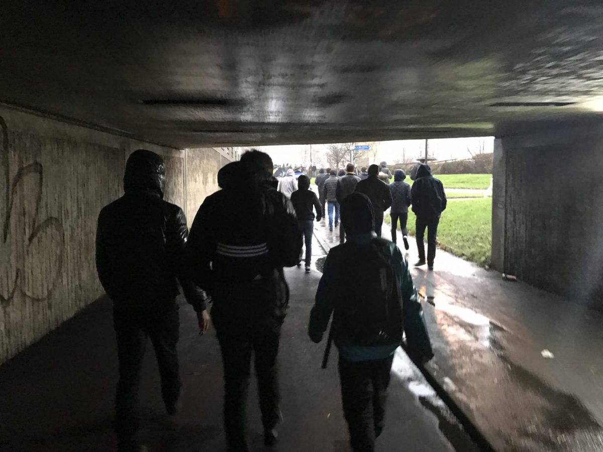 Nach einer Fahrtzeit von ca. 60 Minuten ging es irgendwo im nirgendwo raus aus dem Zug. Die Station für das mk:stadium ist nämlich nicht der „Hauptbahnhof“ von Milton Keynes, sondern der vorgelagerte Bahnhof der Ortschaft „Bletchley“. Nach Verlassen der kleinen schnuckeligen Bahnhofsstation, die einmal mehr an den Harry-Potter-Bahnhof „Hogsmeade“ erinnerte, war es aber auch schon vorbei mit der Idylle.