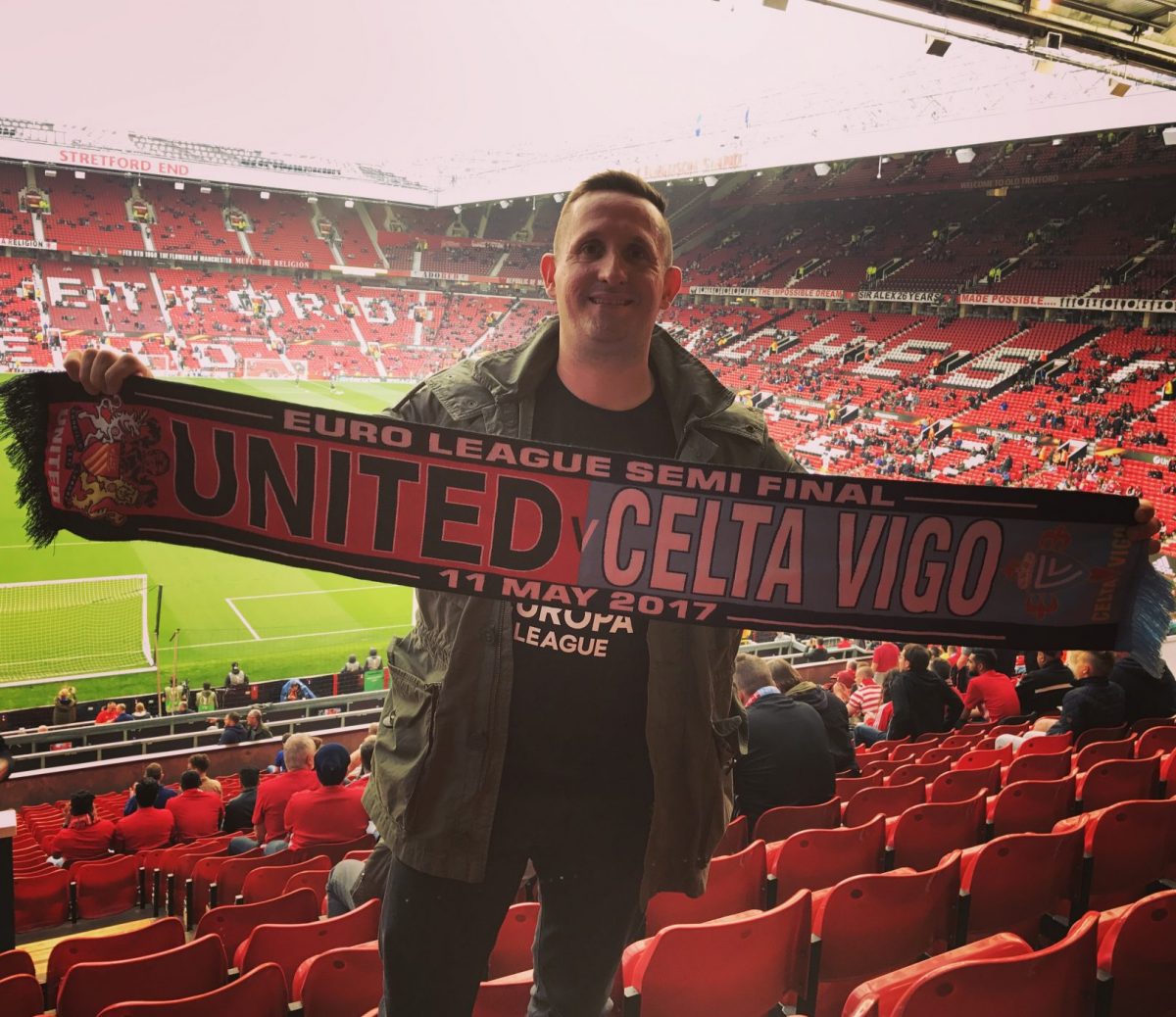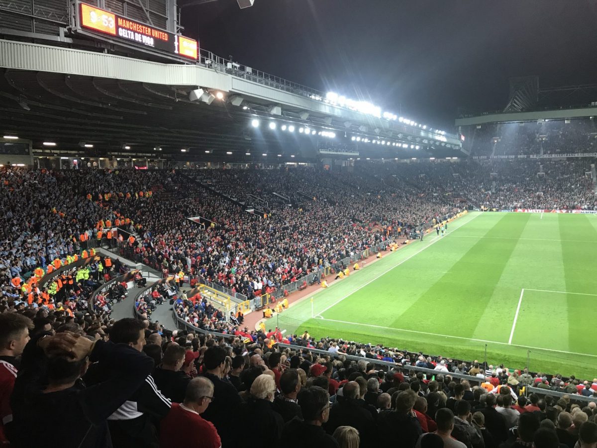 Zu Beginn des Spiels fiel mir zunächst auf, dass niemand seinen Sitzplatz einnahm. Für englische Verhältnisse eher unüblich, da es sogar gesetzlich vorgeschrieben ist, während des Spiel´s zu sitzen. Der Stimmung tat dies übrigens keinen Abbruch, ganz im Gegenteil, es schien der ganzen Sache eher förderlich. Endlich gab es in England mal wieder Menschen, die zusammen standen und auch den einen oder anderen „Football-Chant“ anstimmten. Allerdings muss ich hier auch ein ganz großes Lob an die 3500 mitgereisten Fans aus dem 2400 km entfernten Vigo aussprechen. Das war ein nahezu perfekter Auswärts-Support mit ganz viel Leidenschaft bis zum Ende. Das sah nach Europapokal im ausverkauften Theatre of Dreams aus.