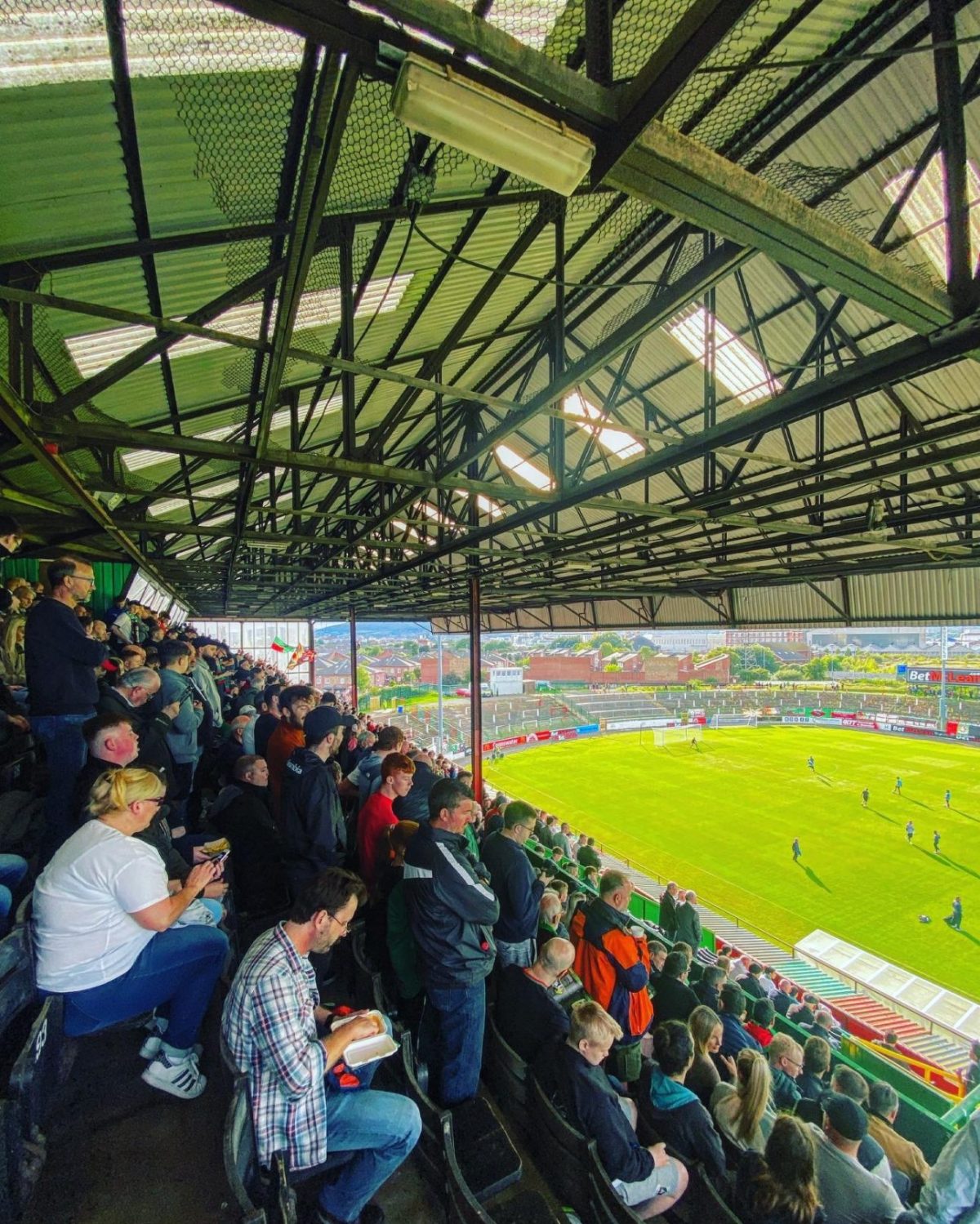 Glücklicherweise hat der nordirische Fußball auch ganz viele positive Aspekte zu bieten, die man im oft „klinisch reinen“ westeuropäischen Festland-Fußball gar nicht mehr so oft findet. Damit meine ich in erster Linie die fußballbegeisterten Menschen, die allein wegen des Spiels ins Stadion gehen und nicht nur anwesend sind, um fortwährend Selfies zu knipsen oder das Trikot ihres überbezahlten Lieblingsspielers mit einem Pappschild zu erhaschen. Dazu gibt es in Nordirland unfassbar traditionelle Stadien, die man selbst im englischen Bruder- und Mutterland des Fußballs nur noch sehr selten findet und einen Menschen in meinem Alter sofort in die Jugendzeit katapultieren.