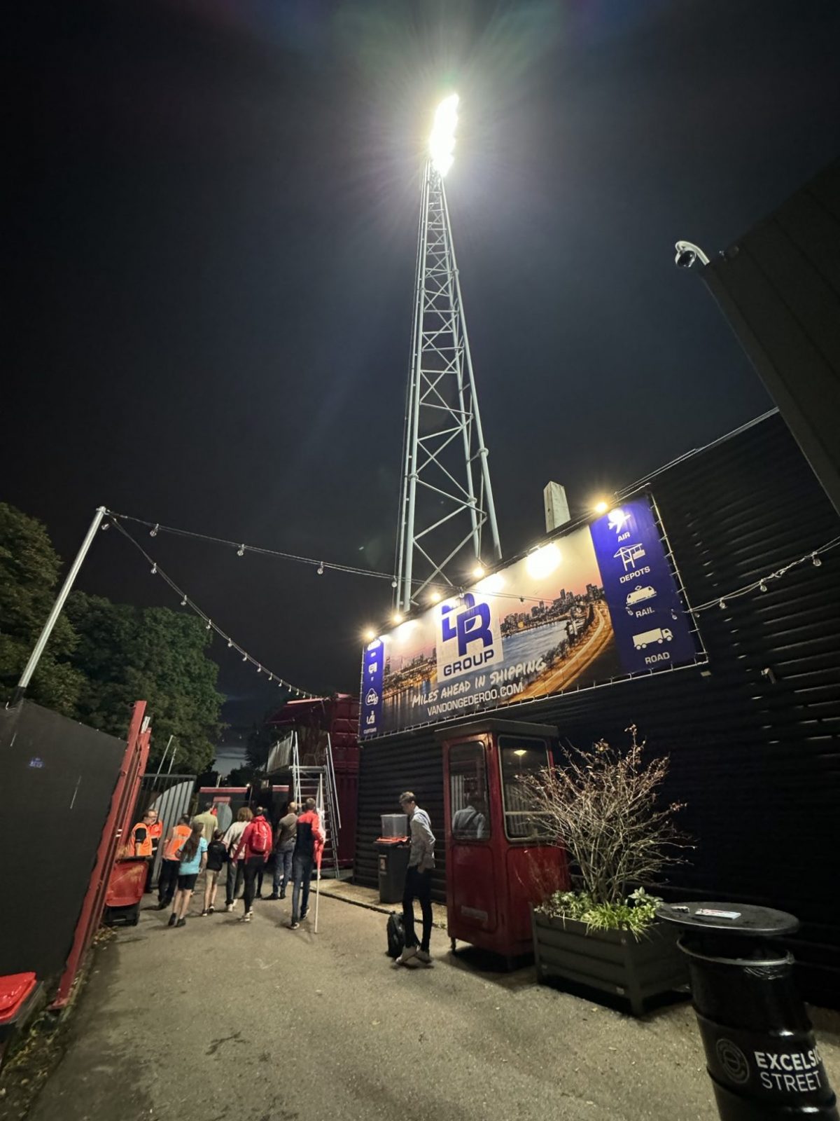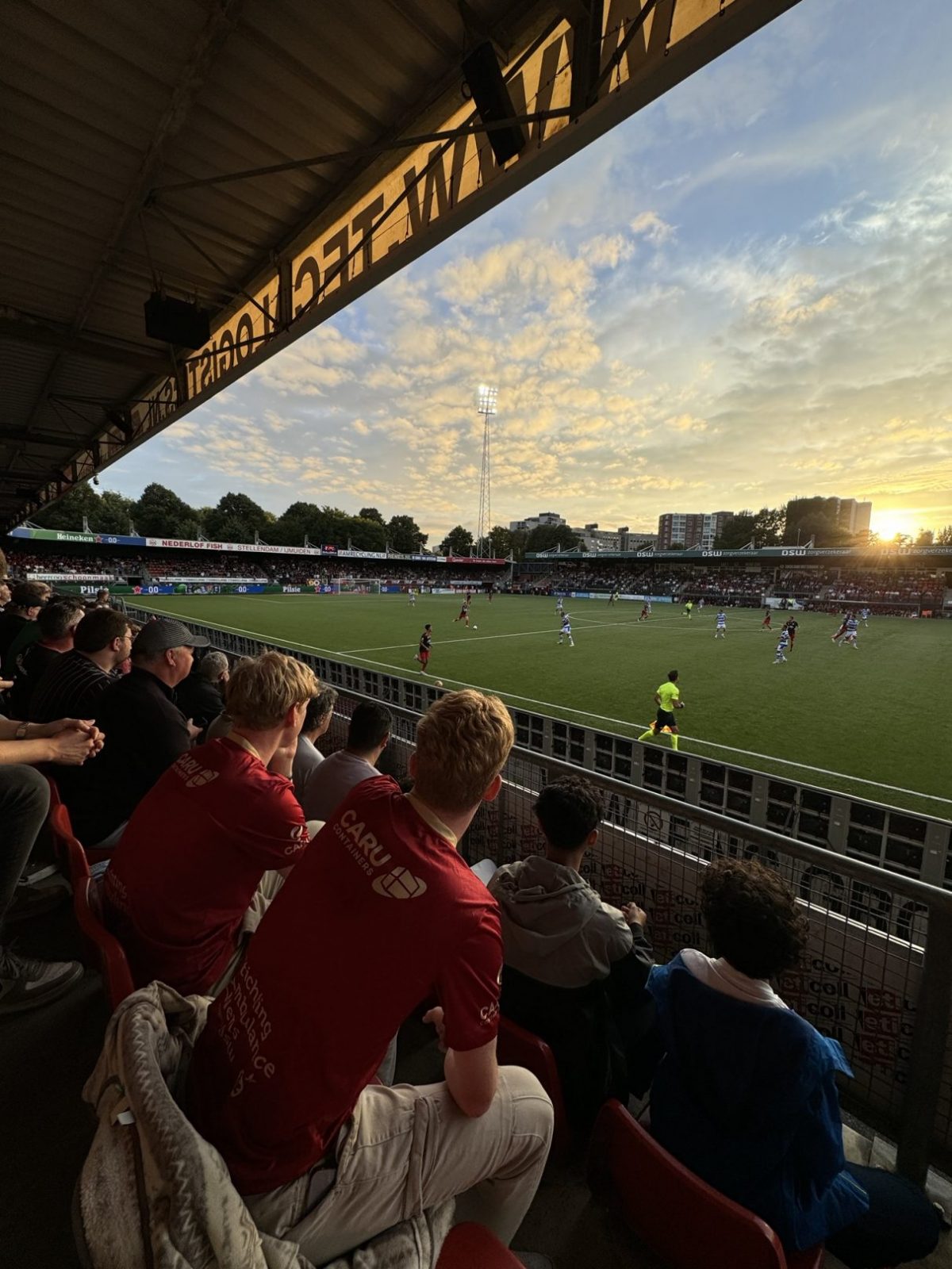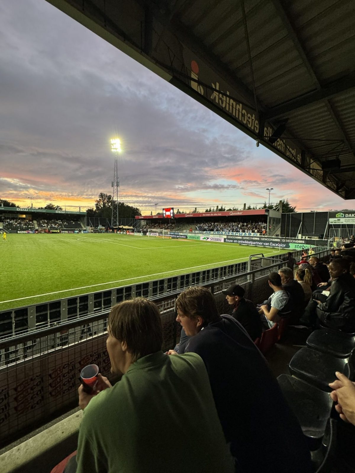 Das absolute Highlight des Abends war übrigens der Sonnenuntergang hinter der Haupttribüne, welcher den Himmel feuerrot einfärbte und mit der Silhouette der charakteristischen Flutlichtmasten doch noch die gewünschte Fußballromantik versprühte. Wenn jetzt noch der berühmteste Spieler auf dem Platz gestanden hätte, den Excelsior je hervor brachte, wäre der Moment perfekt gewesen. Leider ist Robin van Persie mittlerweile 41 Jahre alt und Fußball-Pensionär.