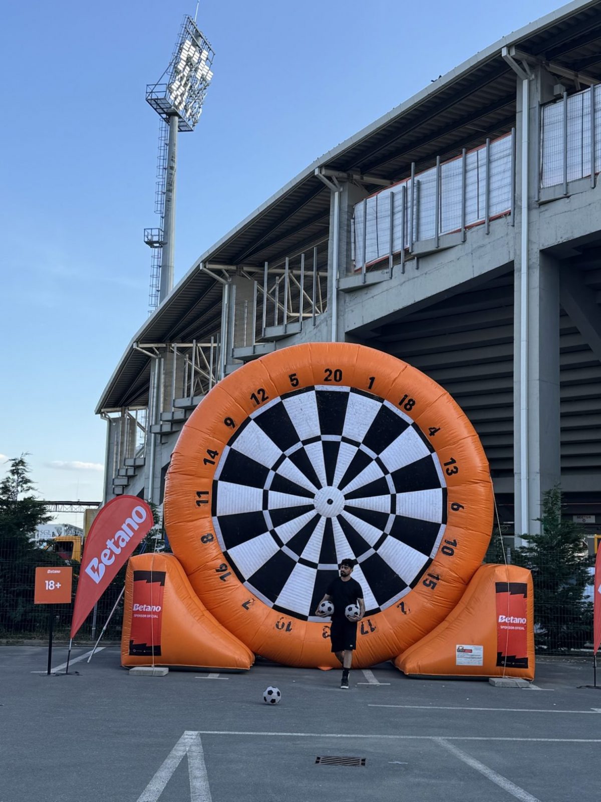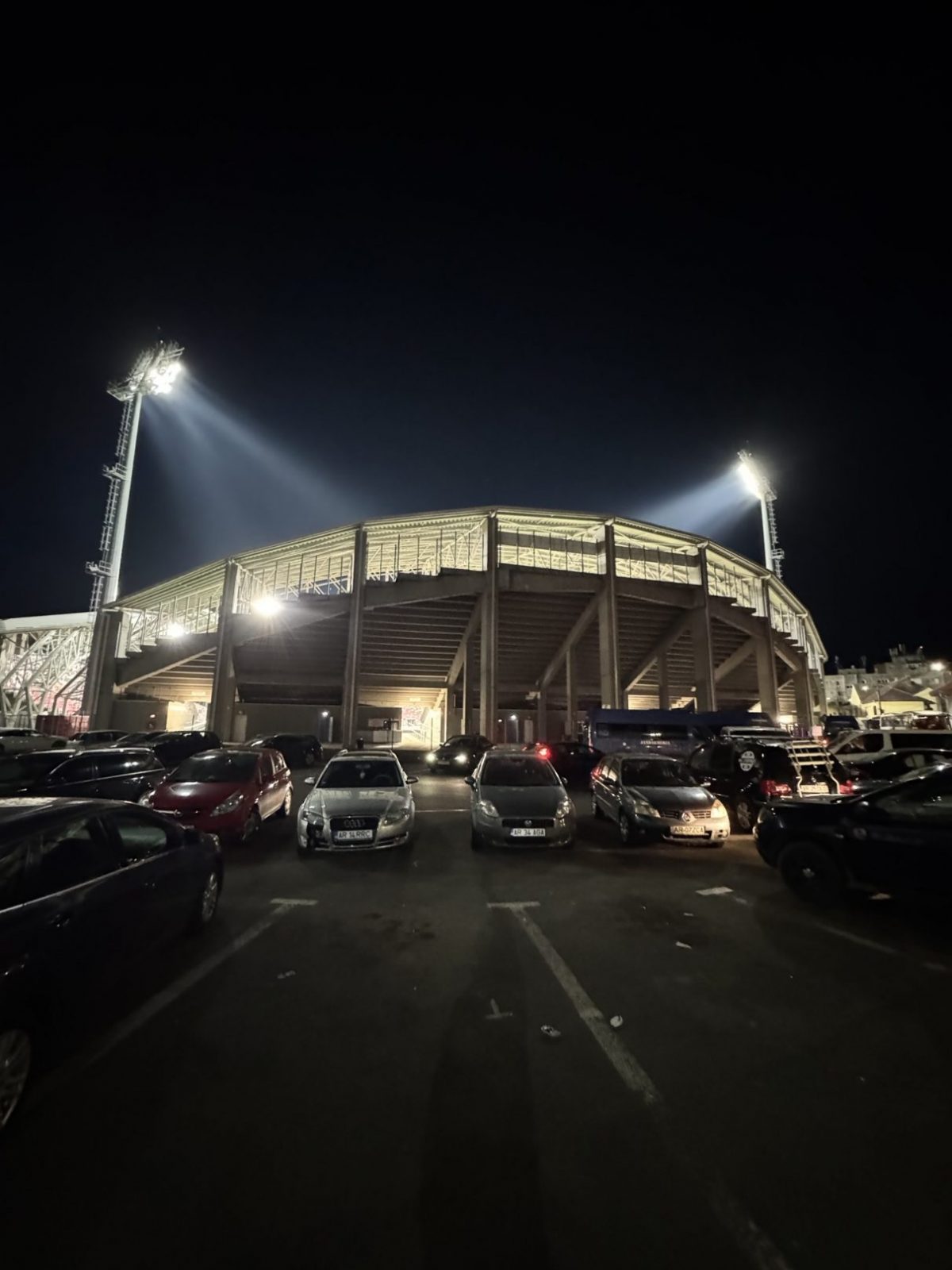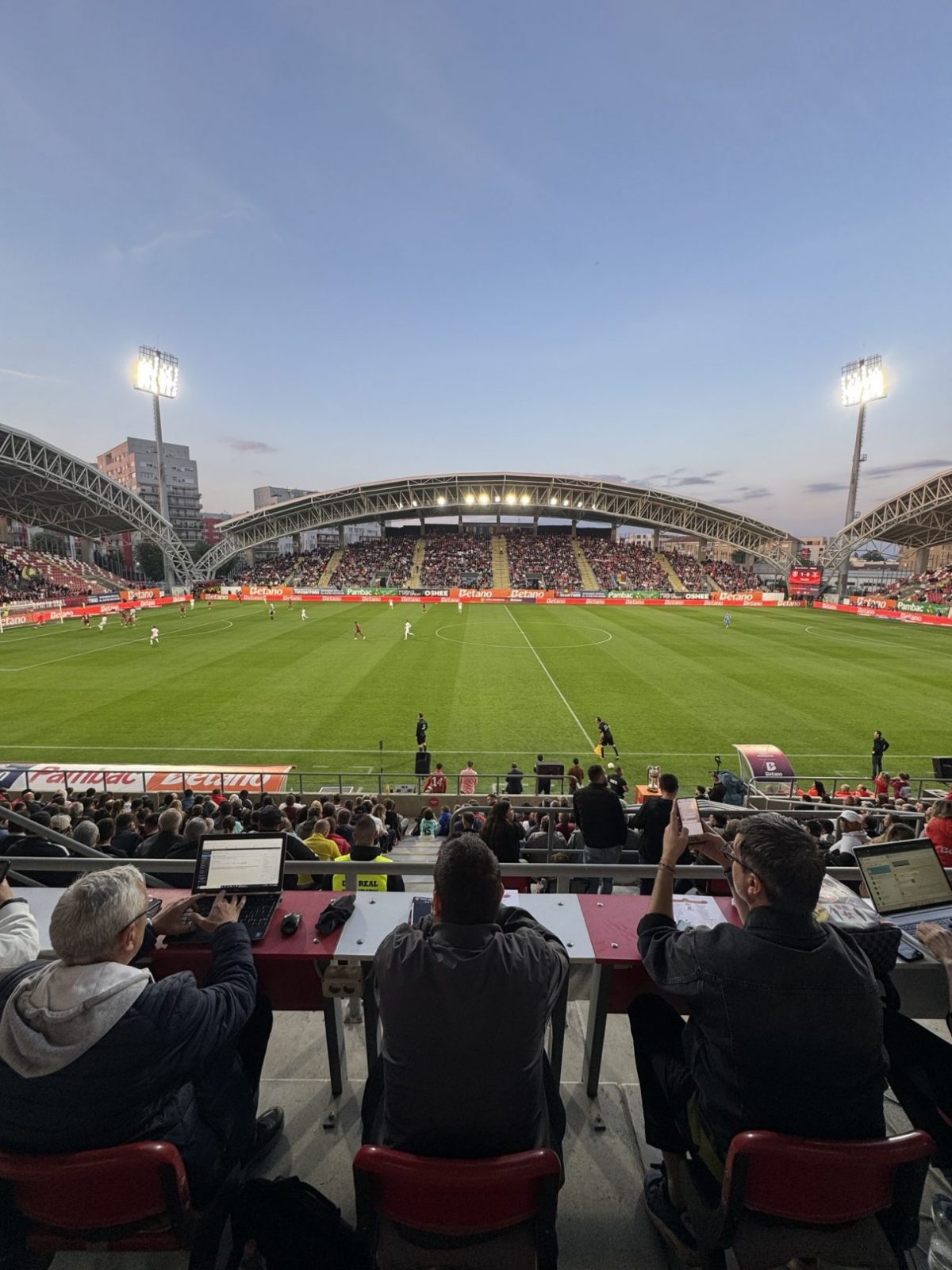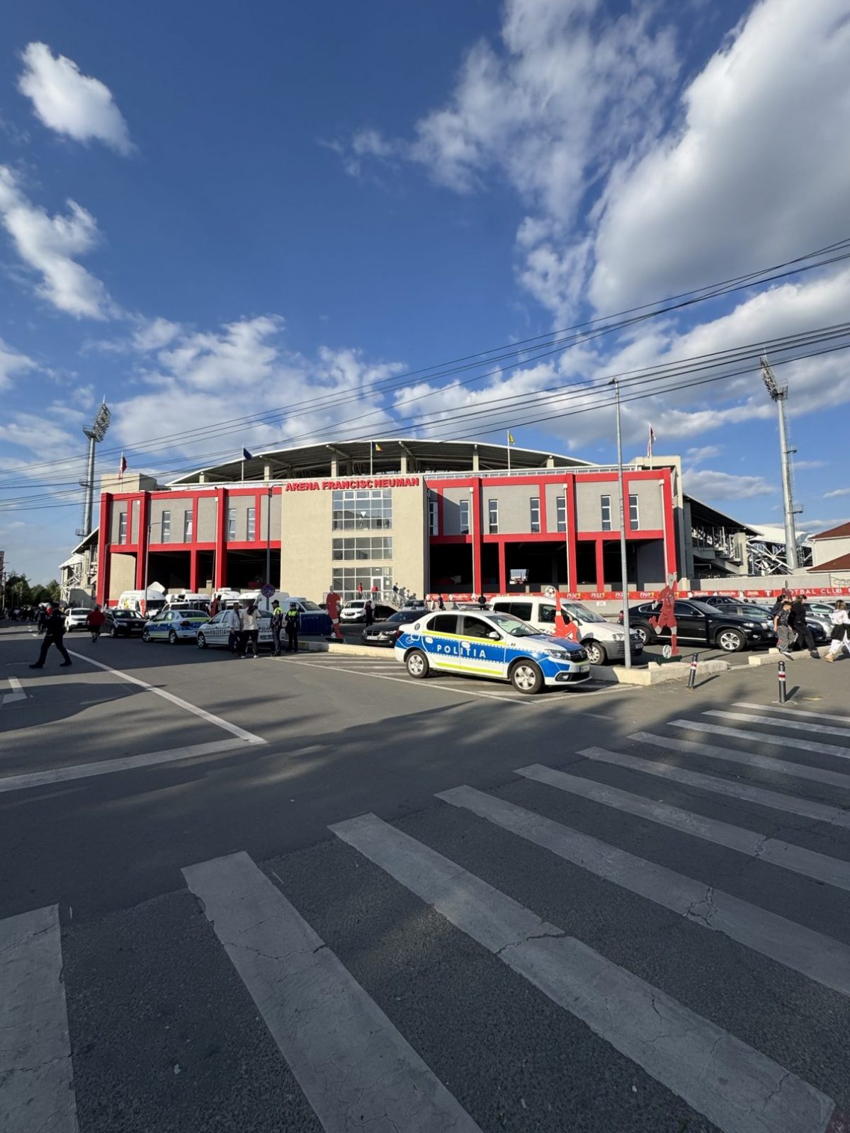 Bei sommerlichen Bedingungen ging es nach meiner Ankunft in Arad direkt zum Stadion. Die moderne Arena ist nach dem jüdisch-ungarischen Unternehmer Francisc von Neumann benannt und wurde erst vor knapp fünf Jahren eröffnet. Dementsprechend wurde die mit einem Fassungsvermögen von 12.000 Zuschauern ausgestattete Heimspielstätte von UTA Arad durch die UEFA bei der Stadionklassifizierung in Kategorie 4 eingestuft. Auf dieser Ebene könnte der heimische Club sogar in den europäischen Pokalwettbewerben antreten. Auf der Suche nach dem mit Abstand auffälligsten Design-Element der Arena bleibt man mit Sicherheit an der bogenförmigen Dachkonstruktion der vier eigenständigen Tribünen hängen, die mich stark an das „Kirklees“-Stadion von Huddersfield oder das „Ljudski Vrt“ im slowenischen Maribor erinnerten.