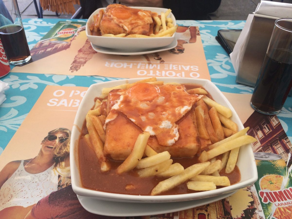 Porto allein ist schon eine Reise wert. Die historische Altstadt Ribeira am Ufer des Flusses Douro, die eindrucksvolle Stahlbrücke „Ponte Dom Luis I“, die Kathedrale von Porto, der Platz „Praca da Liberdade“ mit der Avenida dos Aliados sind unbedingt zu besichtigen. Und bei einem kleinen Hüngerchen sollte man sich schleunigst in die Altstadt begeben, am Ufer des Douro in einem der unzähligen Restaurants Platz nehmen und die vielleicht kalorienreichste Mahlzeit auf dieser Welt bestellen: Eine Portion Francesinha, eine Mischung aus Pommes-Frites, Toastbrot, Ei, Käse, Schinken, Steak-Fleisch und der portugiesischen Chorizo-Wurst. Selbst ein Gemüseanteil ist mit Tomatensauce vorhanden. Dazu ein Glas Portwein und der sofortige Toilettenbesuch ist nahezu garantiert.