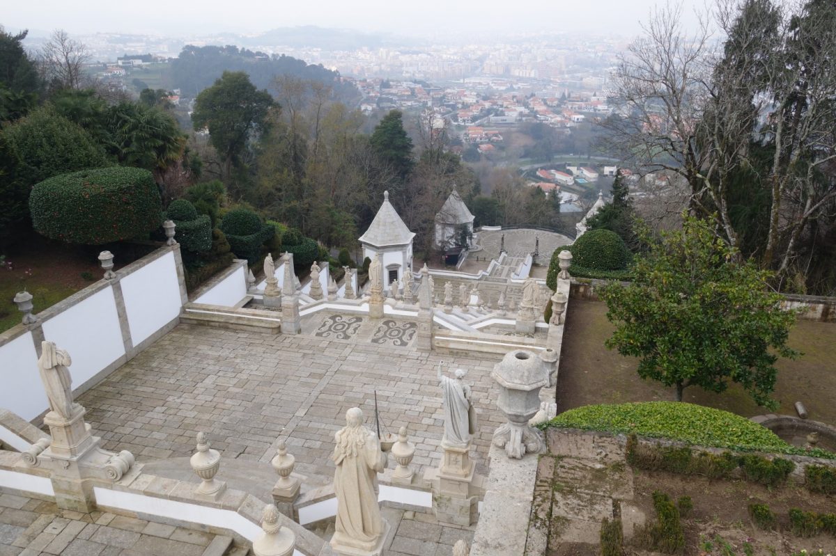 Nach Einchecken im örtlichen IBIS-Hotel ging es dann auch direkt in die Innenstadt. Die nahe gelegene Altstadt wirkt mit ihren alten Kirchen und dem großen Platz „Praca de Republica“ sehr nett und gepflegt, eine portugiesische Postkartenidylle. Aber das war es dann fast auch schon. Wer am Abend Unterhaltung und Nightlife sucht, der ist in dieser Stadt definitiv falsch. Auch die Restaurants in der Stadt sollten nach Möglichkeit, entgegen den sonstigen südländischen Gewohnheiten, eher am frühen Abend besucht werden. Trotzdem hält die Stadt neben dem Stadion noch ein echtes Sightseeing-Highlight bereit, der Suchende wird nicht enttäuscht und sollte sich zur Wallfahrtskirche „Bom Jesus do Monte“ begeben. Das Gotteshaus befindet sich auf einer Anhöhe, ca. 5 km nördlich der Innenstadt. Ein toller Ort, mit fantastischer Aussicht und einer altertümlichen Zahnradbahn für den Auf- und Abstieg.