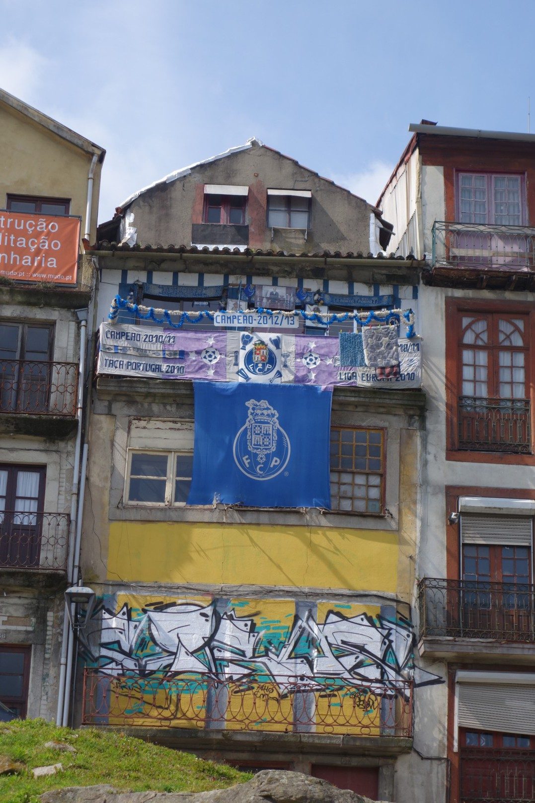Am Spieltag selbst begab ich mich vor dem Spiel zurück in die größte Stadt der Region, nach Porto. Die hat zwar nur knapp 60.000 Einwohner mehr als Braga, gilt aber in der Region als absolute Metropole. Und das konnte man auch merken. Viele Touristen, viele Sehenswürdigkeiten, sehr viel Trubel und eine kleine Überraschung: Die knapp 1000 Auswärtsfans aus der Türkei mit ihren gelb-blauen-Trikots. Hier hatten sie sich also versteckt. Und wenn ich den amerikanischen Dialekt eines türkischen Fans und die getragene Jacke mit dem Aufdruck „Fenerbahce Fans USA“ richtig gedeutet habe, gab es sogar den Fan mit der vermeintlich längsten Anreise.