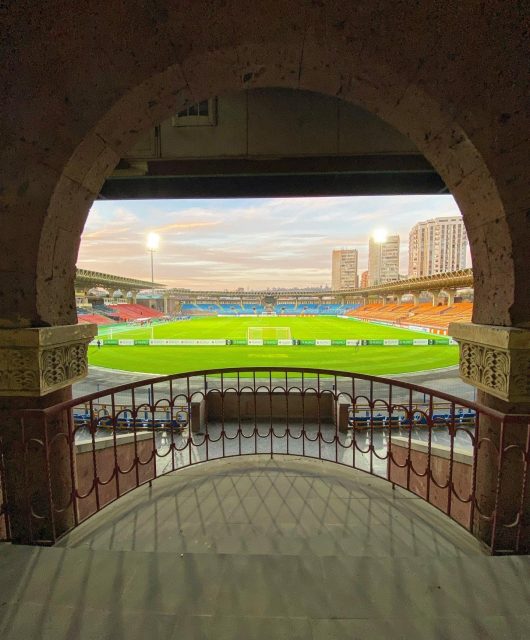 Zum Spiel der Europa-League begaben wir uns zu Fuß aus dem Stadtzentrum zum Stadion. Ein netter Spaziergang von 15-20 Minuten durch typisch südländische Wohnsiedlungen, die aber auch irgendwie ein wenig an einen deutschen Problemstadtteil erinnerten. Und obwohl wir uns mit dem Handy streng an die Wegbeschreibung von Google Maps hielten, konnte man das Stadion einfach nicht sehen. Die nun bei mir aufkommende innere Unruhe, dass man sich möglicherweise verlaufen hat bzw. das GPS-Signal nicht stimmen kann, war letztlich völlig unbegründet. Denn wenn man sich über die Wohnsiedlung und den Parkplatz hinter der Südseite des Stadions annähert, kann man das Stadion gar nicht sehen. Selbst wenn man einen Meter davor steht.