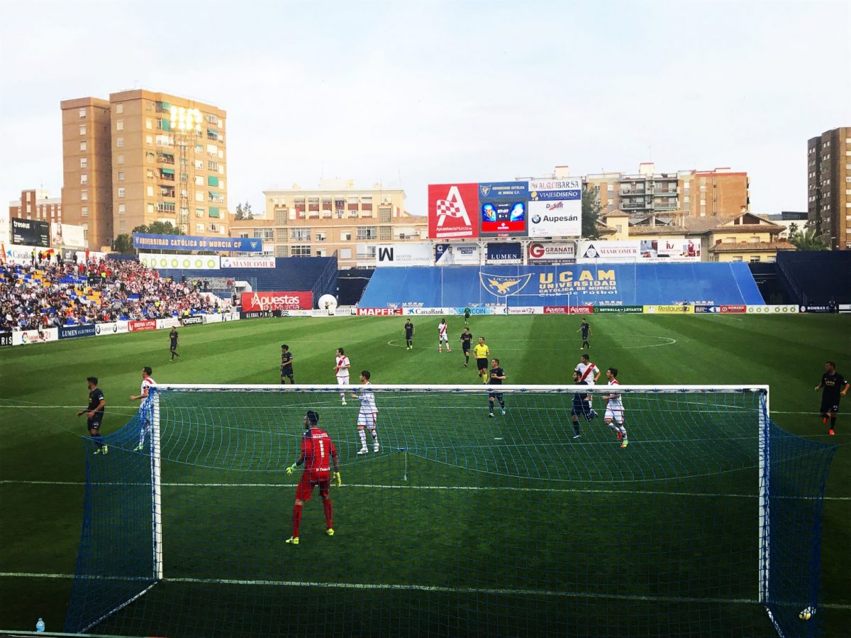 Das anschließende Spiel zwischen UCAM und Rayo Vallecano bot zwei völlig verschiedene Teammodelle auf. Die Heimmannschaft bestand aus jungen, hungrigen und zumeist einheimischen Spielern. Hier verfolgt die Universität Murcia offenbar eine Idee nach dem amerikanischen Vorbild eines College-Teams. Der langjährige Erstligist aus der Vorstadt Madrids setzte eher auf Erfahrung und Legionäre. Hierbei handelte es sich zum Beispiel um den ehemaligen Hertha-BSC-Spieler Patrick Ebert (30), der die linke Außenbahn von Rayo beackerte. Aber auch die weiteren Legionäre wie Manucho (ehemals Manchester United) oder der Rumäne Rat (ehemals FC Shakhtar Donezk) gehen schon stark auf die 40 zu.