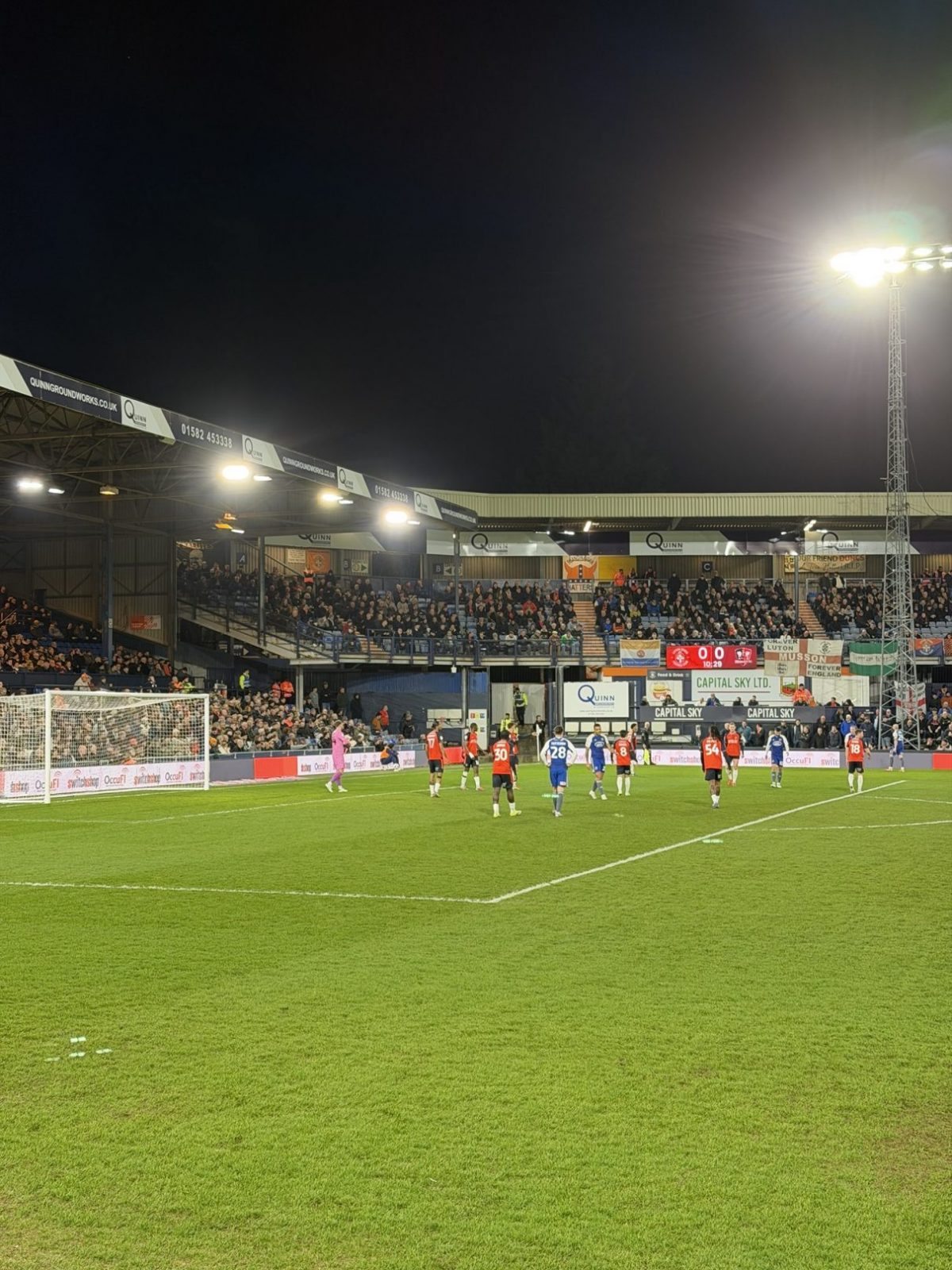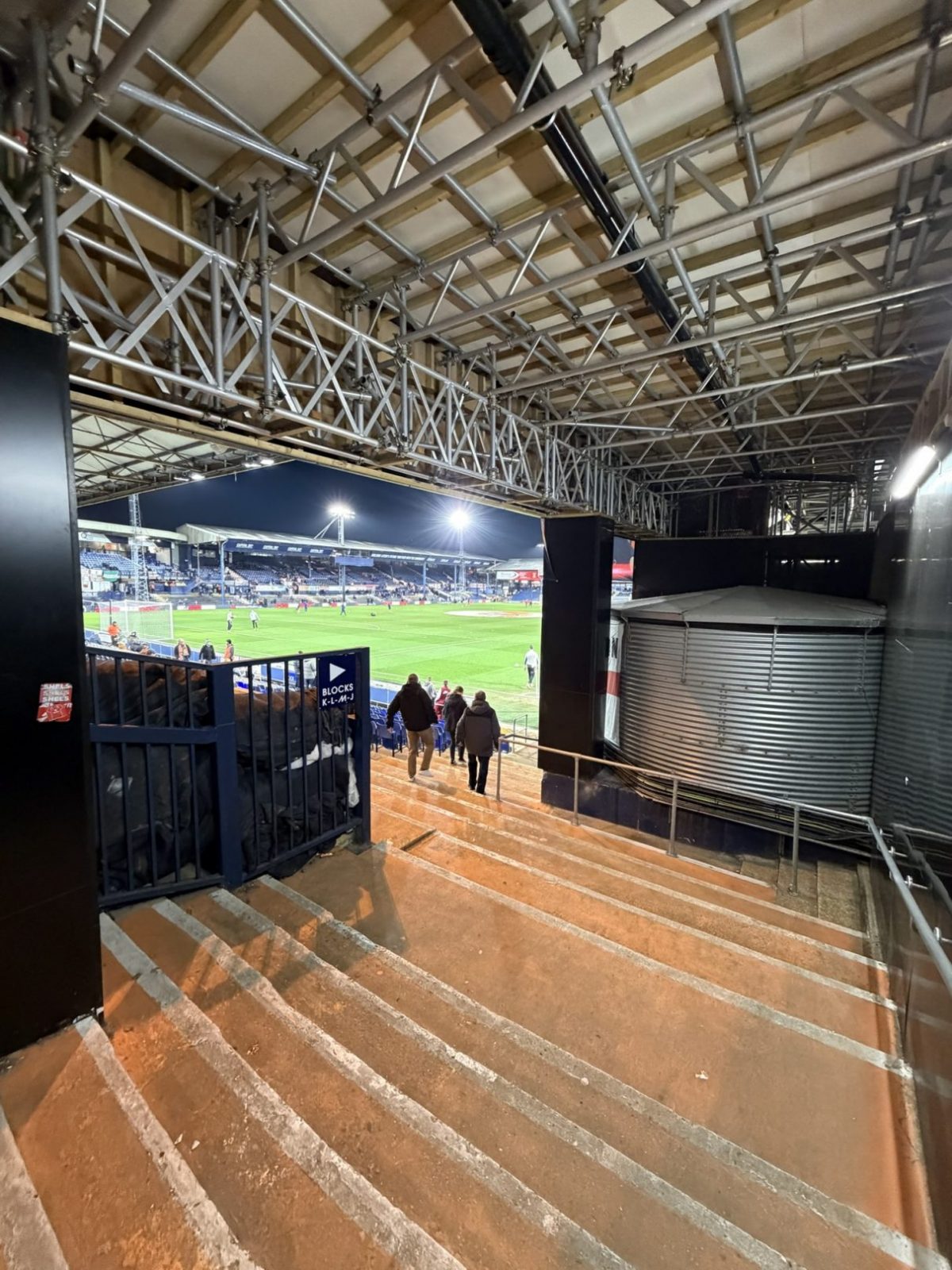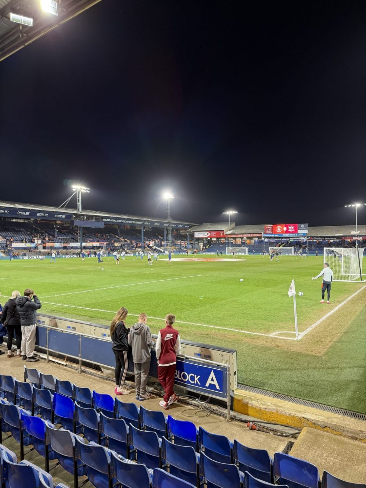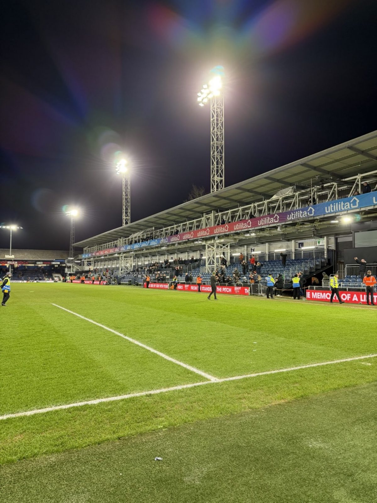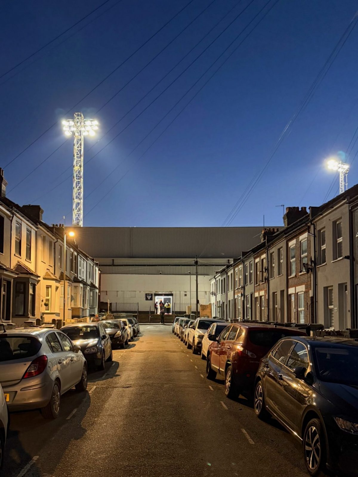 Vielmehr passte der in voller Lautstärke abgespielte Oldie der schottischen Band „Pilot“ zum Stadion des Clubs. Die 1905 eröffnete Spielstätte an der Kenilworth Road fasst gut 10.000 Zuschauer und ist so etwas wie der Prototyp eines altehrwürdigen englischen Fußballstadions. Gerade im Vergleich zu den modernen Arenen unserer Zeit ist die Kenilworth Road der absolute Gegenpol. Das Stadion befindet sich inmitten einer „Working-Class“-Wohnsiedlung mit den typisch englischen Reihenhäusern und versprüht den Charme der 1970er-Jahre. Speziell bei Abendspielen entfacht das Stadion seinen vollen Zauber, wenn sich das eingeschaltete Flutlicht in den Fenstern der Häuser spiegelt und die Straßenbeleuchtung damit überflüssig macht. Richtig skurril wird es dann aber, wenn der unwissende Besucher das Stadion über die Oak Road betreten möchte. Um seinen Platz im Stadion einzunehmen, muss man sich entweder durch das Erdgeschoß der angrenzenden Wohnhäuser kämpfen oder einen circa zwei Meter breiten Weg nutzen, welcher durch die Hinterhöfe und Gärten zum Haupteingang des Stadions führt!