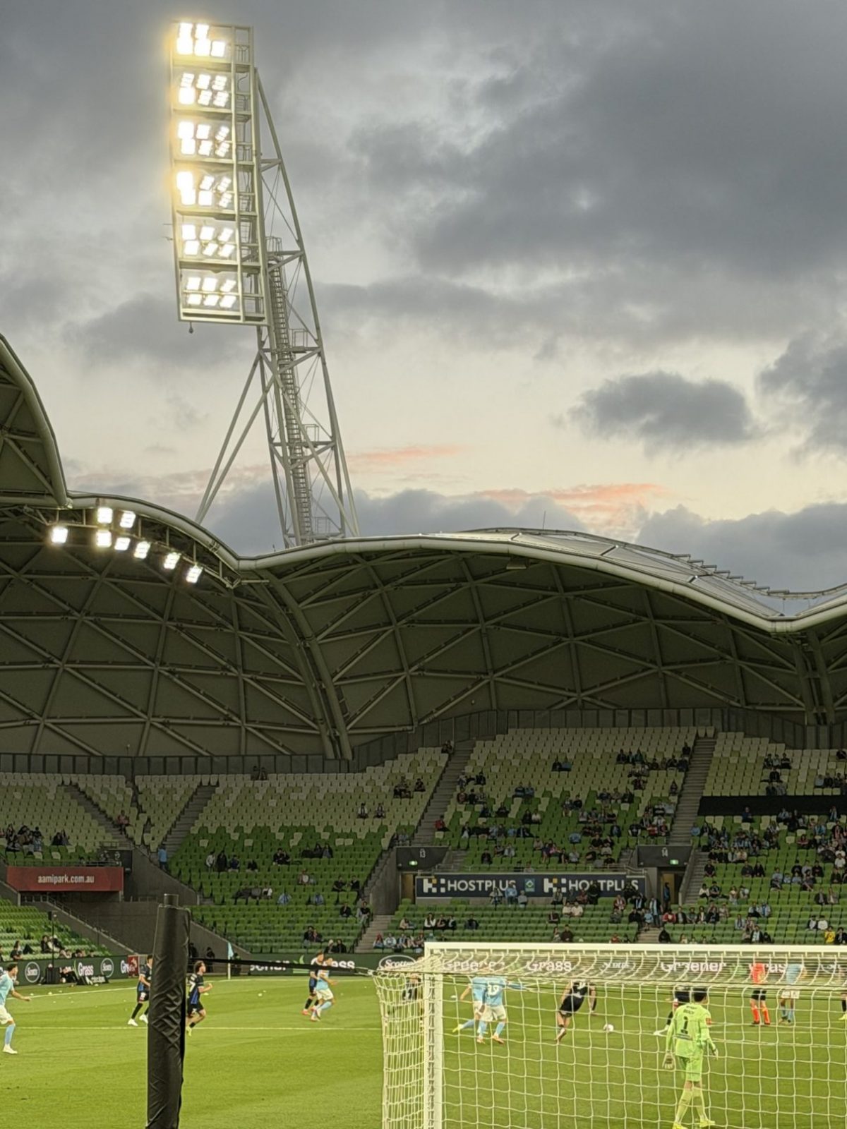 Bevor es zum Duell zwischen Meister und aktuellem Tabellenführer der A-League kommen sollte, gab es im schicken AAMI-Park ein weiteres Erstliga-Duell. Hier trafen die Frauen von Melbourne City in der A-League Women auf die Frauen-Mannschaft der Newcastle Jets. Was man als Europäer etwas despektierlich als eine Art Vorspiel wahrnimmt, fällt in Australien unter den Oberbegriff der Gleichberechtigung. Hier fiel auf, dass Frauen- und Männerfußball unter dem Dach der professionellen „A-League“ vermarktet werden und in den sozialen Medien der Vereine einen ausgewogenen und gleichen (Aufmerksamkeits-)Anteil erhalten. Auch die Zuschauerzahl war bei beiden Spielen am Ende nicht allzu weit auseinander. Während die 1:3 (1:1)-Niederlage der Melbourne-Frauen von knapp 2.000 Zuschauern verfolgt wurde, fanden sich bei den Männern im Anschluss gut 5.600 Zuschauer ein.