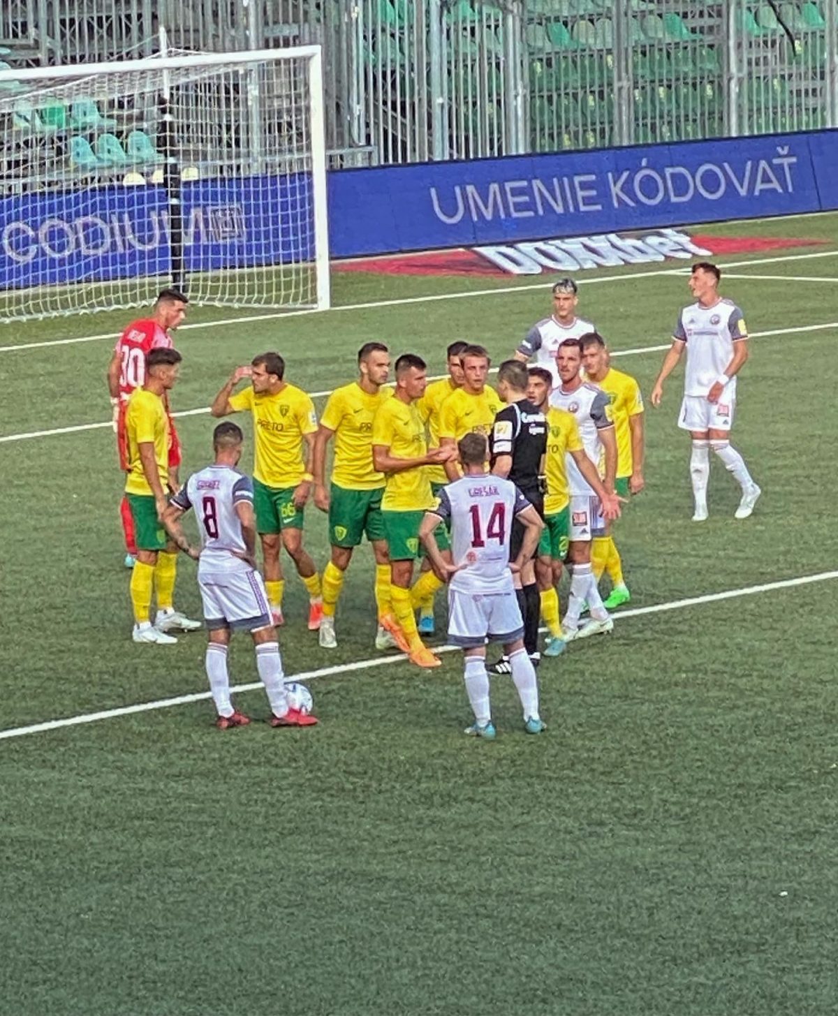Vor übersichtlichen 1.369 Zuschauern übernahmen die Gäste nach Anpfiff der Partie etwas überraschend die Spielkontrolle. Der Aufsteiger aus Podbrezova erspielte sich mehrere gute Möglichkeiten und war nach 25 Minuten zudem in Überzahl. Nach einem Foulspiel von Zilina-Kapitän Nemcik an der Strafraumkante gab es nach einem Hinweis des VAR von Schiedsrichter Dohal die Rote Karte. Der Platzverweis veränderte das Spiel in der Folge komplett. Plötzlich waren es nicht mehr die zuvor überlegenen Gäste, die das Spiel bestimmten, sondern die in Unterzahl agierenden Gastgeber, welche im Verlauf der weiteren gut 70 Spielminuten mehrere Hochkaräter vergaben.