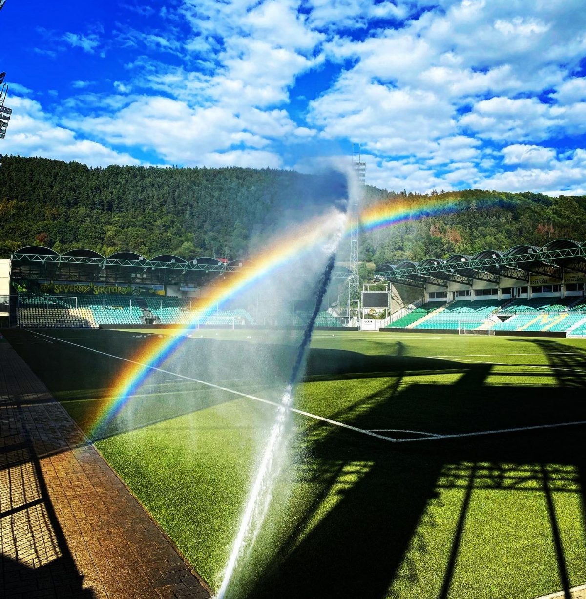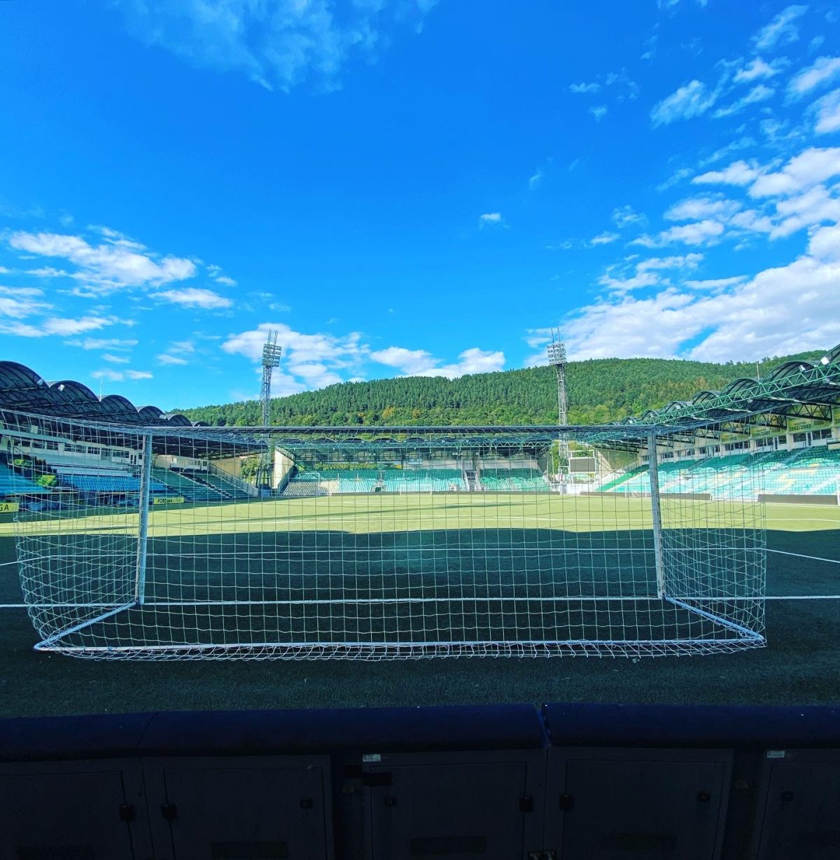 Genau deshalb war ich umso dankbarer für eine inoffizielle Einladung ins Wohnzimmer des MSK Zilina. Während der Umrundung des „Pod Dubnom“ stieß ich auf die sogenannte „offene Tür“, meine Metapher für den unerwarteten Zutritt in die Stadien dieser Welt. Die „offene Tür“ besitzt viele verschiedene Gesichter und ist gerade tagsüber in so ziemlich jedem Stadion auf diesem Planeten mit ein bisschen Aufwand zu finden. In Zilina trat die „offene Tür“ als schnödes Metalltor auf, das zwar sperrangelweit geöffnet war, mit dem Hinweis „Tor immer schließen“ aber auch eindringlich vor dem obligatorisch grimmigen Platzwart warnte.
