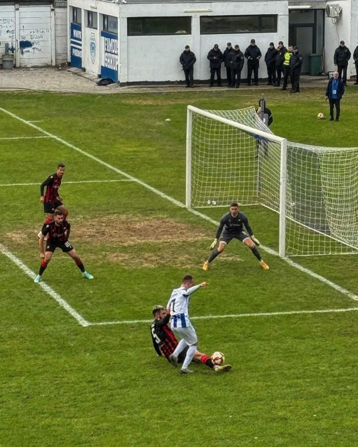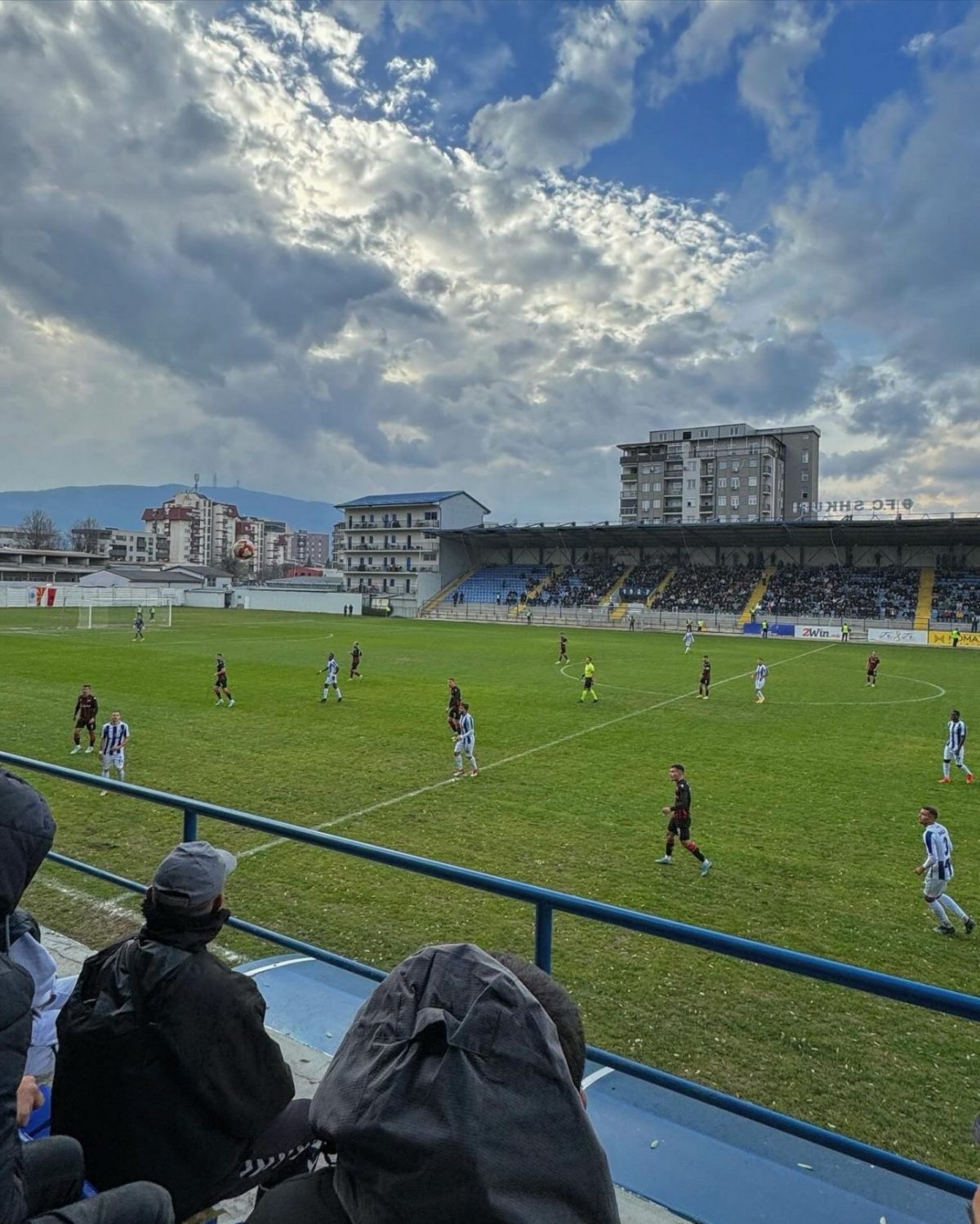 Nach Anpfiff von Schiedsrichter Aleksandar Grujoski entwickelte sich bei eisigem Wind ein Fußballspiel, das mit Fußball eigentlich nichts zu tun hatte. Ständige Abspielfehler auf beiden Seiten, technische Unzulänglichkeiten und unzählige harte Zweikämpfe im Mittelfeld ließen so gar keinen Spielfluss aufkommen. Lediglich der Geistesblitz von Shkupi-Akteur Kristijan Trapanovski sorgte in der 37. Spielminute für südosteuropäische Begeisterung auf den Rängen, als der Spieler mit der Rückennummer 11 von der linken Außenbahn in den gegnerischen Strafraum zog und den Ball mit rechts gefühlvoll zur 1:0-Halbzeitführung ins lange Eck schlenzte. In der zweiten Hälfte änderte sich nur wenig. Die Gäste konnten nicht drücken, die Gastgeber nicht kontern. So blieb es beim 1:0 (1:0)-Sieg des Tabellenzweiten KF Shkupi 1927, welcher nun nur noch einen Punkt hinter dem führenden FC Struga liegt!