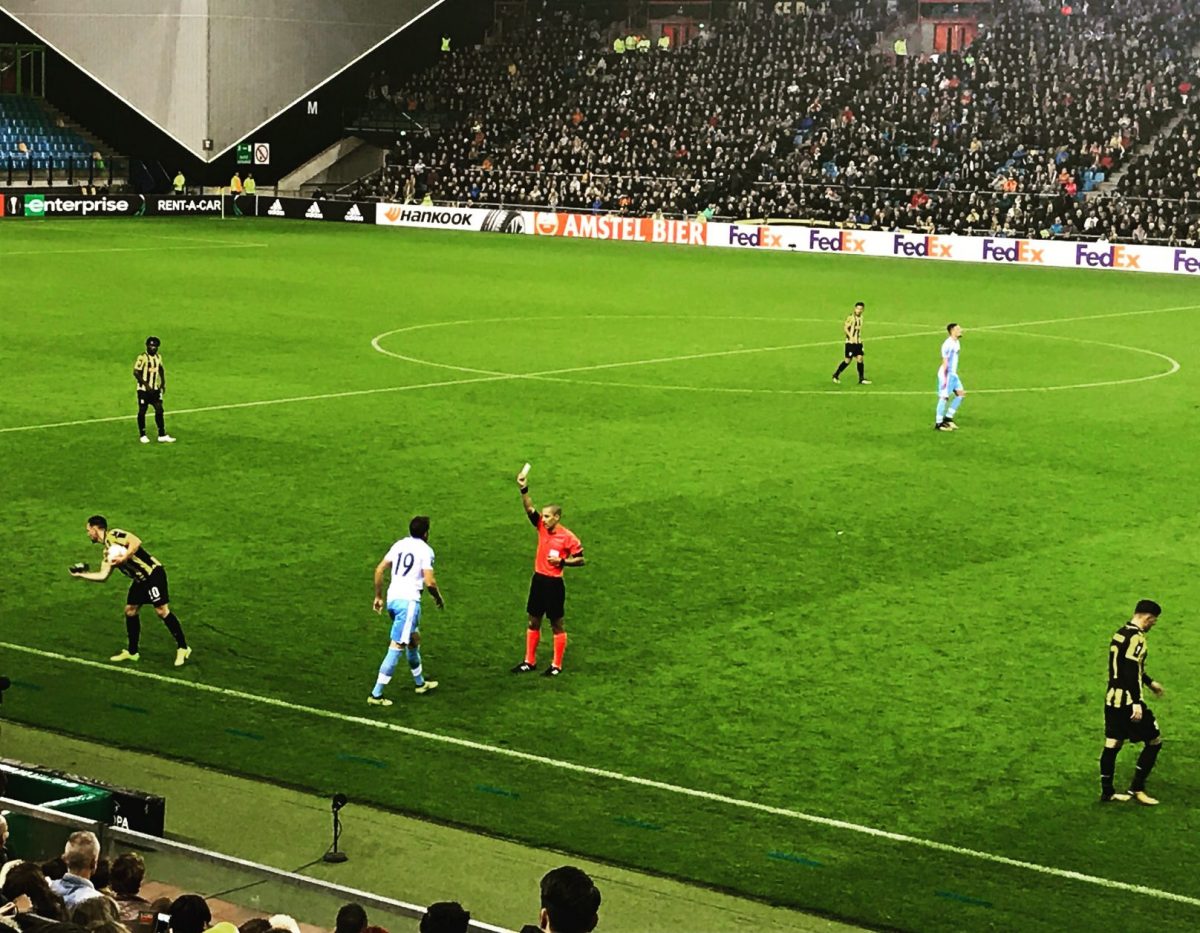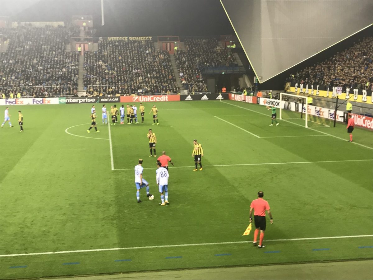 Noch bevor ich den Begriff „typisch abgezockte und körperlich robuste italienische Mannschaft“ aussprechen konnte, sorgte Vitesse-Stürmer Tim Matavz für den Dosenöffner aus niederländischer Sicht. Nach Zuspiel des überragenden Albaners Rashica nahm der Slowene und ehemalige Augsburger Bundesliga-Profi den Namen seiner Mannschaft wörtlich und traf zur überraschenden Halbzeitführung (33.)! Das Wort „Vitesse“ ist französisch und heißt nichts anderes als „Schnelligkeit“!