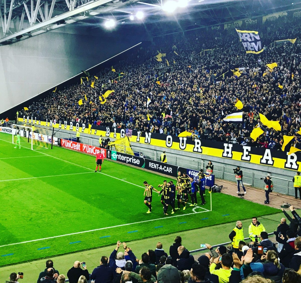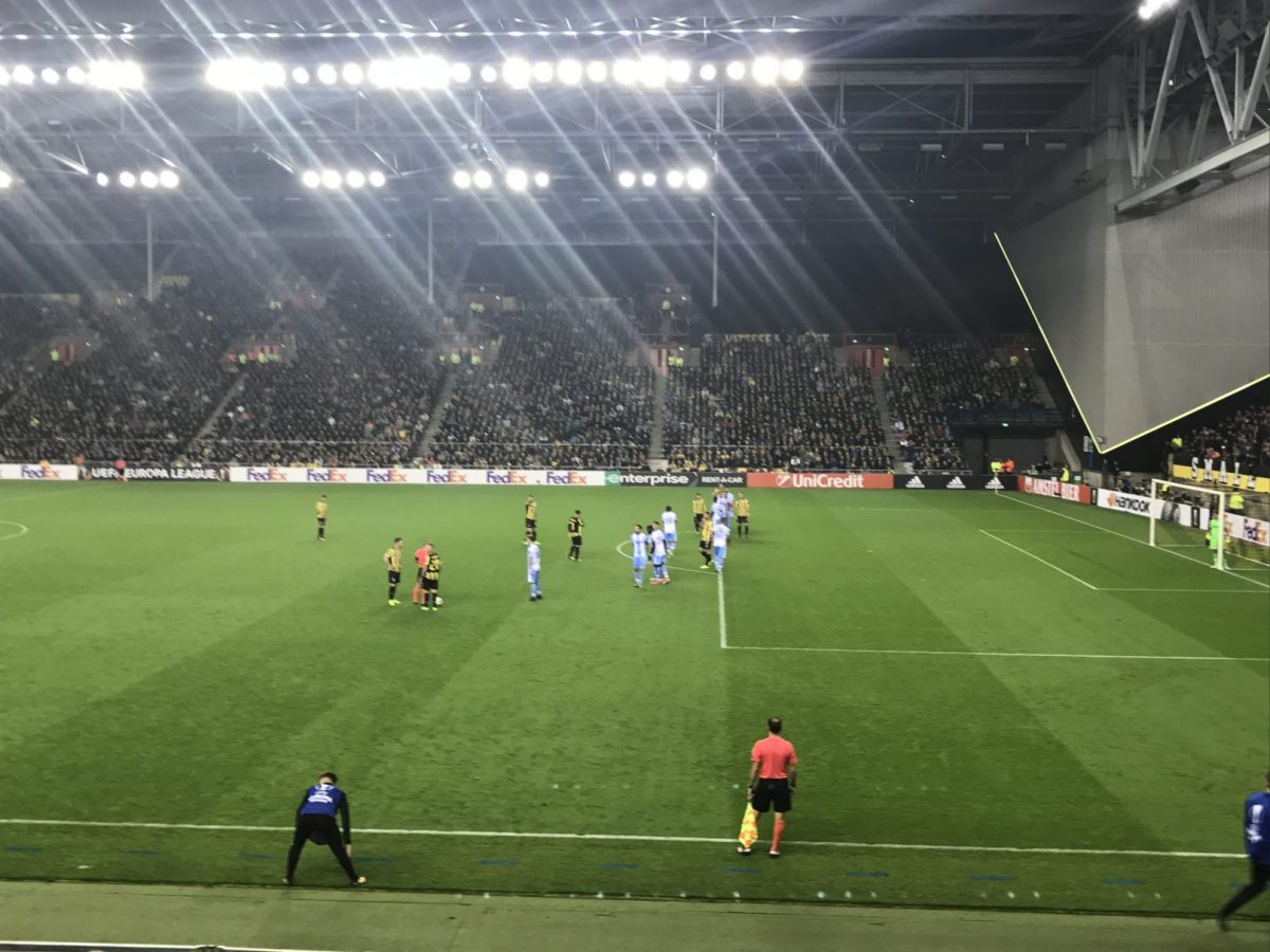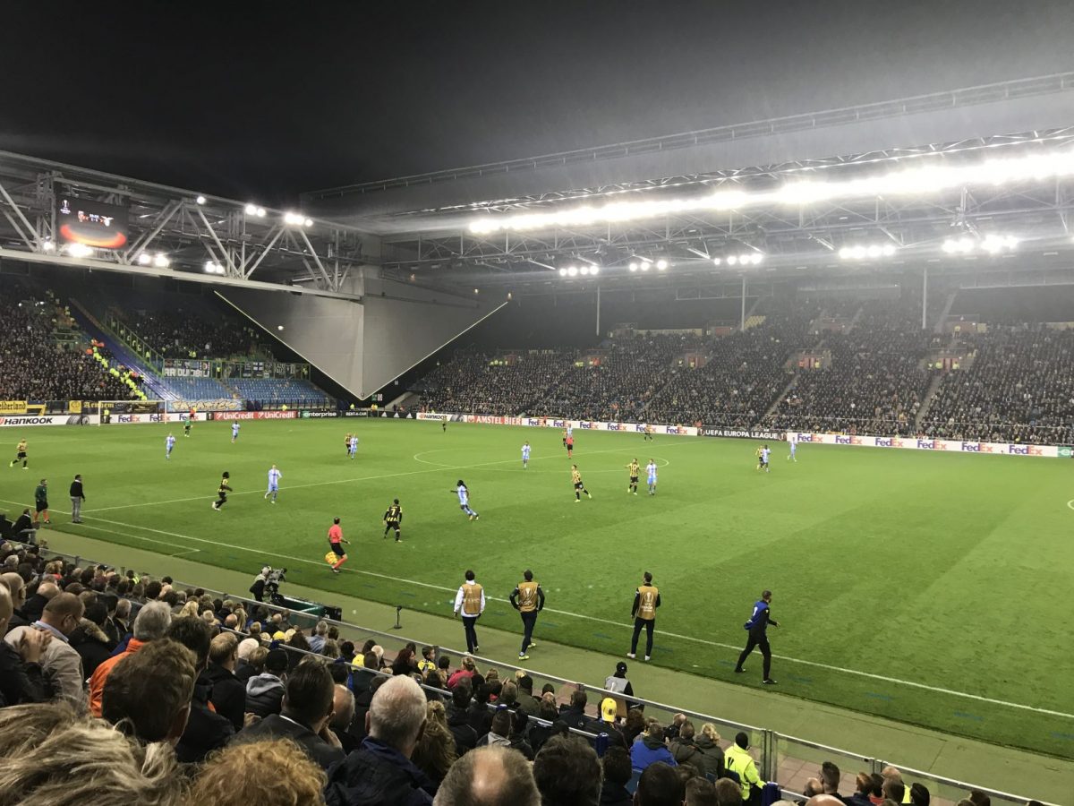 Ein bitterer Abend für den amtierenden niederländischen KNVB-Pokalsieger, verbunden mit der ewigen Frage, wo der Fußballgott eigentlich ist, wenn man ihn mal braucht!! Vermutlich ahnten die eigenen Fans den Spielverlauf, das große Banner mit der Aufschrift „Small in Europe, big in our Heart“ passte nur zu gut! Trotz der Niederlage ein würdiger Rahmen für das allererste UEFA Europa-League-Match von Vitesse in der Hauptrunde dieses Wettbewerbs!