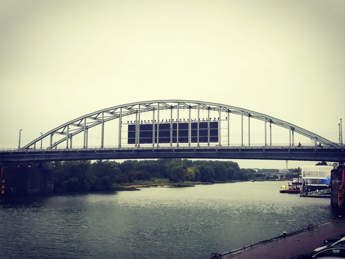 Nach Ankunft in Arnheim ging es bei strömenden Regen zunächst einmal ins Stadtzentrum. Neben einer sehr gemütlichen Innenstadt mit vielen Geschäften, Bars und Restaurants befindet sich hier die vielleicht wichtigste Sehenswürdigkeit der Stadt, zumindest wenn man sich für Geschichte interessiert. Die „John Frost-Bridge“, eine Brücke über den Niederrhein, war im 2. Weltkrieg derartig umkämpft, dass ihr im Jahr 1977 sogar ein eigener Hollywood-Blockbuster gewidmet wurde. Der Film mit dem passenden Titel „Die Brücke von Arnheim“ mit Schauspielern wie Sean Connery und Michael Caine stellt prinzipiell die Originalhandlung der Operation „Market Garden“ im Jahr 1944 nach. Damals versuchte die alliierten Truppen mit Hilfe einer umstrittenen Luft-Boden-Operation den deutschen „Westwall“ zu umgehen und ins Innere des „Deutschen Reiches“ einzudringen. Nach erbitterten Kämpfen mit deutschen Truppen und vielen Toten auf beiden Seiten scheiterte die alliierte Aktion nach 10 Tagen. Die Brücke wurde nach dem britischen Generalmajor John Frost benannt, welcher die Brücke von Arnheim mit seiner kleinen Einheit insgesamt 4 Tage hielt und durch deutsche Truppen in Kriegsgefangenschaft geriet.