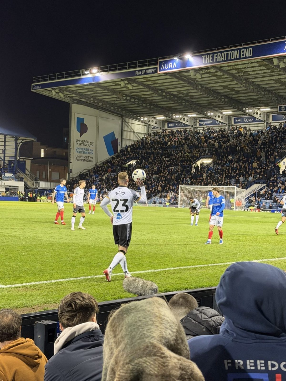 Mit dem Auswärtssieg in Portsmouth bleiben die Widder aus Derby in Schlagdistanz zu den Play-Off-Plätzen und können zumindest vom Aufstieg in die Premier League träumen. Ganz anders war die Gefühlslage auf Seiten der Gastgeber, die sich von den gut 1.000 angereisten Fans aus Derby nach Spielende verhöhnen lassen mussten. „You´re going down, you’ re going down, you’re going doooown“ hörte man aus den gut geölten Kehlen, eine Vermutung, die aufgrund der spielerischen Leistung von Pompey schnell zur Tatsache werden könnte!