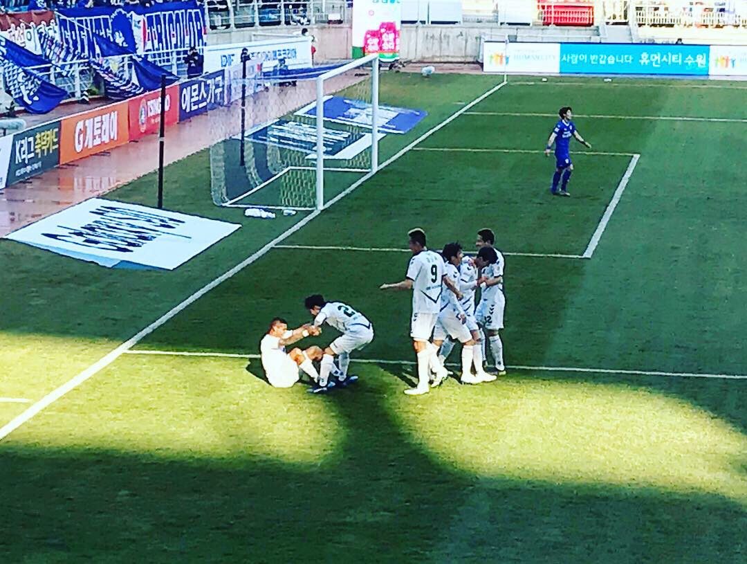 Was in einem deutschen Stadion spätestens mit dem 0:3 einen zügellosen Wutanfall der Heimfans und das gewohnte „Wir wollen Euch kämpfen sehen“ verursacht hätte, war in Korea weiterhin Unterstützung pur! Ein durchgehend guter und lautstarker Support der Heimfans bis zum Abpfiff. Man hatte durch die enthusiastische Unterstützung jederzeit das Gefühl, dass die Bluewings das Ding trotz hohem Rückstand noch drehen würden…nur der Zeitpunkt war halt unklar…!
