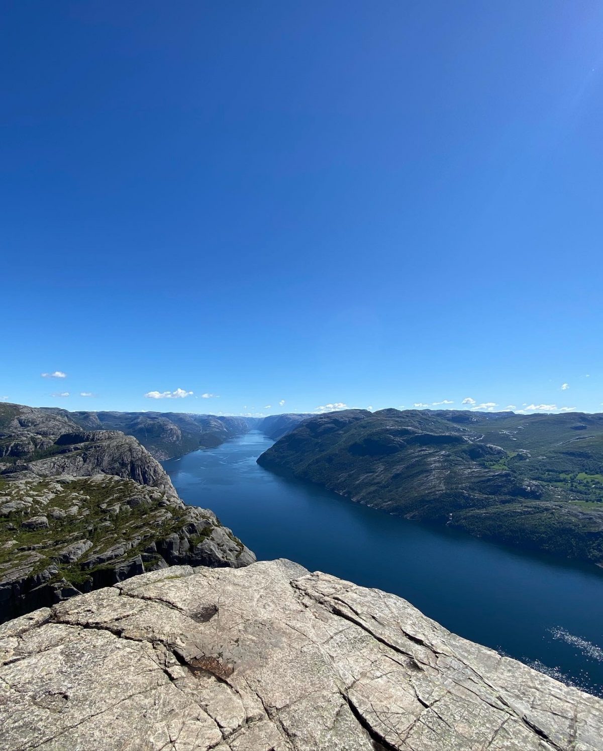 Auch ich wagte mich auf den steinigen Weg, für den man sicher keine größeren Erfahrungen im Bereich des Bergwanderns benötigt, aufgrund des mittleren Schwierigkeitsgrades aber ein Mindestmaß an vernünftiger Ausrüstung und Proviant voraussetzen sollte. Nur dann wird die gut vierstündige Wanderung auch ein sportliches Vergnügen, das mit dem atemberaubenden Blick über den Lysefjord zum Höhepunkt kommt.