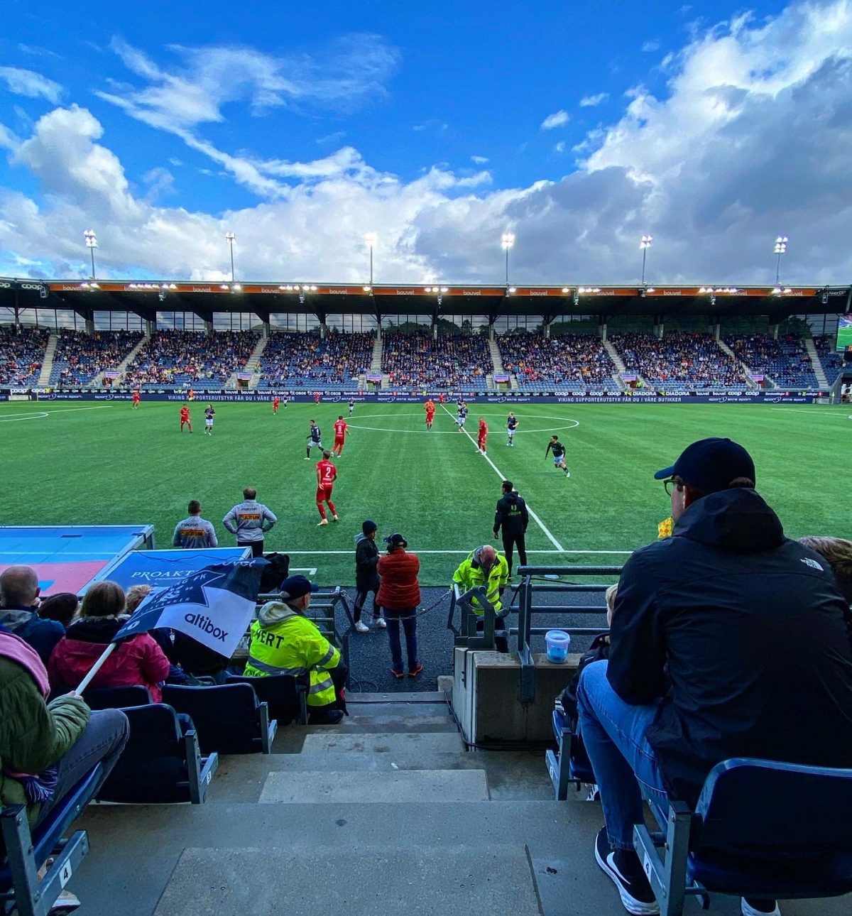 Der war berechtigt und wurde durch Hoiland zum Anschluss genutzt (65.). Plötzlich waren die Gastgeber, wie jedes andere Team auf dieser Welt, wieder in der Spur und erzielten nur wenig später den durchaus verdienten Ausgleich durch Ramsland (72.). Ein Unentschieden, das in der Tabelle niemand weiterbringt, an diesem schönen norwegischen Abend aber auch niemanden ärgerte. Ich fühlte mich nach einem langen Tag nun etwas dehydriert, musste aber bis Zuhause auf ein Feierabendbier warten. Alkohol wird in norwegischen Stadien, mit Ausnahme der VIP-Bereiche, nicht ausgeschenkt.