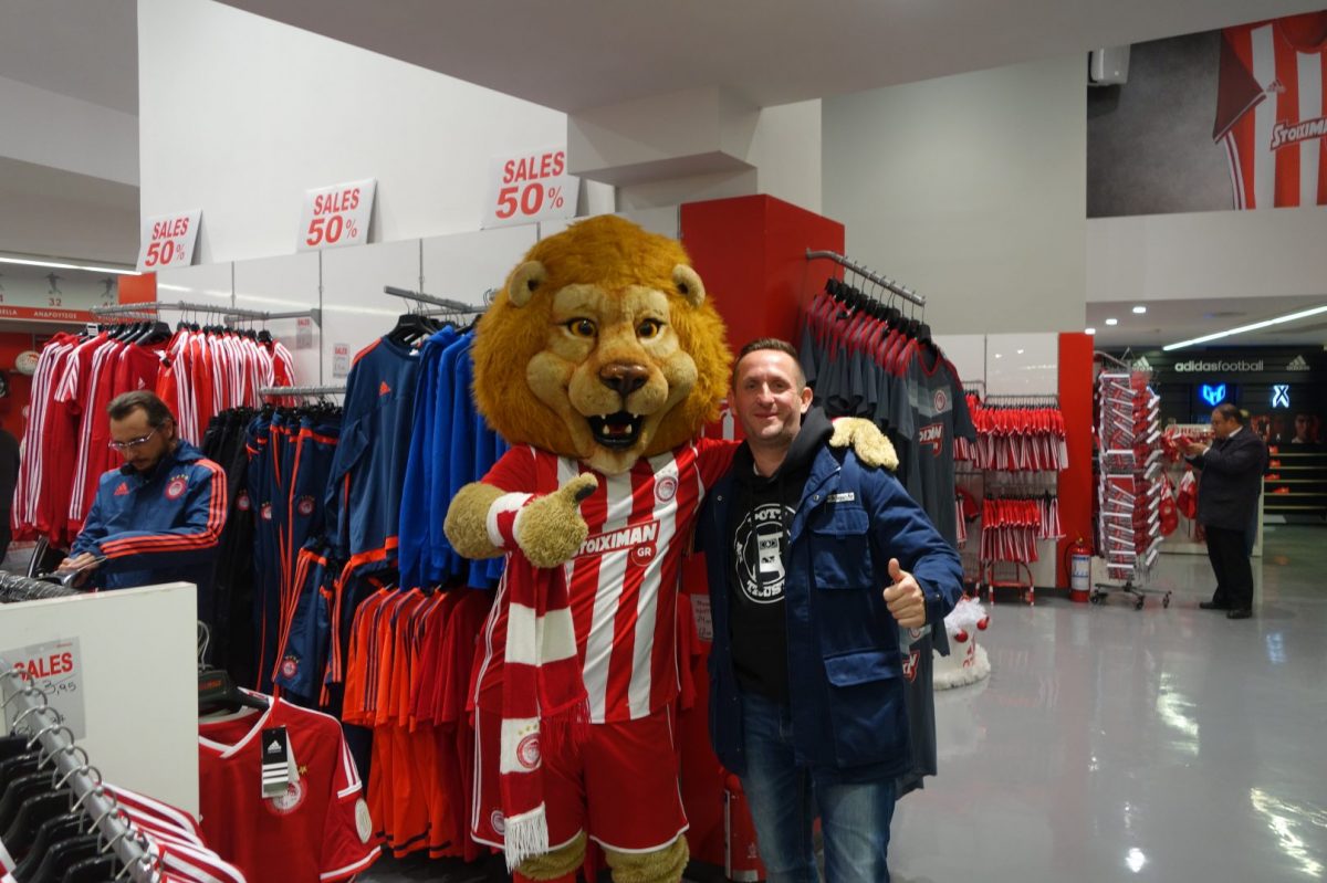 Nach dem Warmmachen im genannten Café in der Plaka ging es zum Spiel. Die Anreise zum Georgios-Karaiskakis-Stadion im Athener Hafenviertel Piräus erfolgte recht einfach mit der U-Bahn vom Monastiraki-Platz und dauerte ca. 10-15 Minuten. Nach Ankunft ging es zunächst einmal darum, unsere virtuellen Clubkarten in richtige Plastikarten umzutauschen. Nach Erhalt dieser Fankarten und unserer Eintrittskarten ging es in eine kurze Stadionbesichtigung.