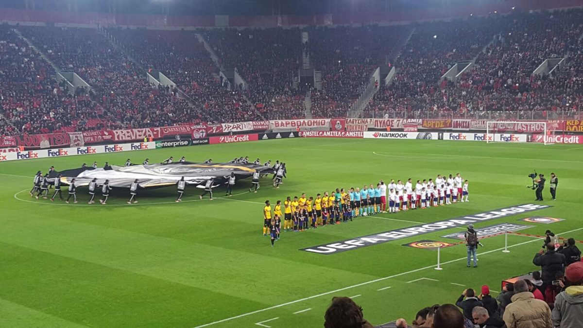 Bezüglich der vorgenannten Probleme entschied ich mich für ein Spiel des Rekordmeisters Olympiacos FC in der UEFA Europa-League. Die spielten am 24.11.2016 in der Gruppenphase gegen den Berner Sport-Club Young Boys. Ein Spiel im Europapokal sollte allein aufgrund der höheren Präsenz von Sicherheitskräften bzw. der erhöhten Sicherheitsanforderungen der perfekte Einstieg für ein Spiel in Griechenland sein, ohne sofort in den Kampf ziehen zu müssen.
