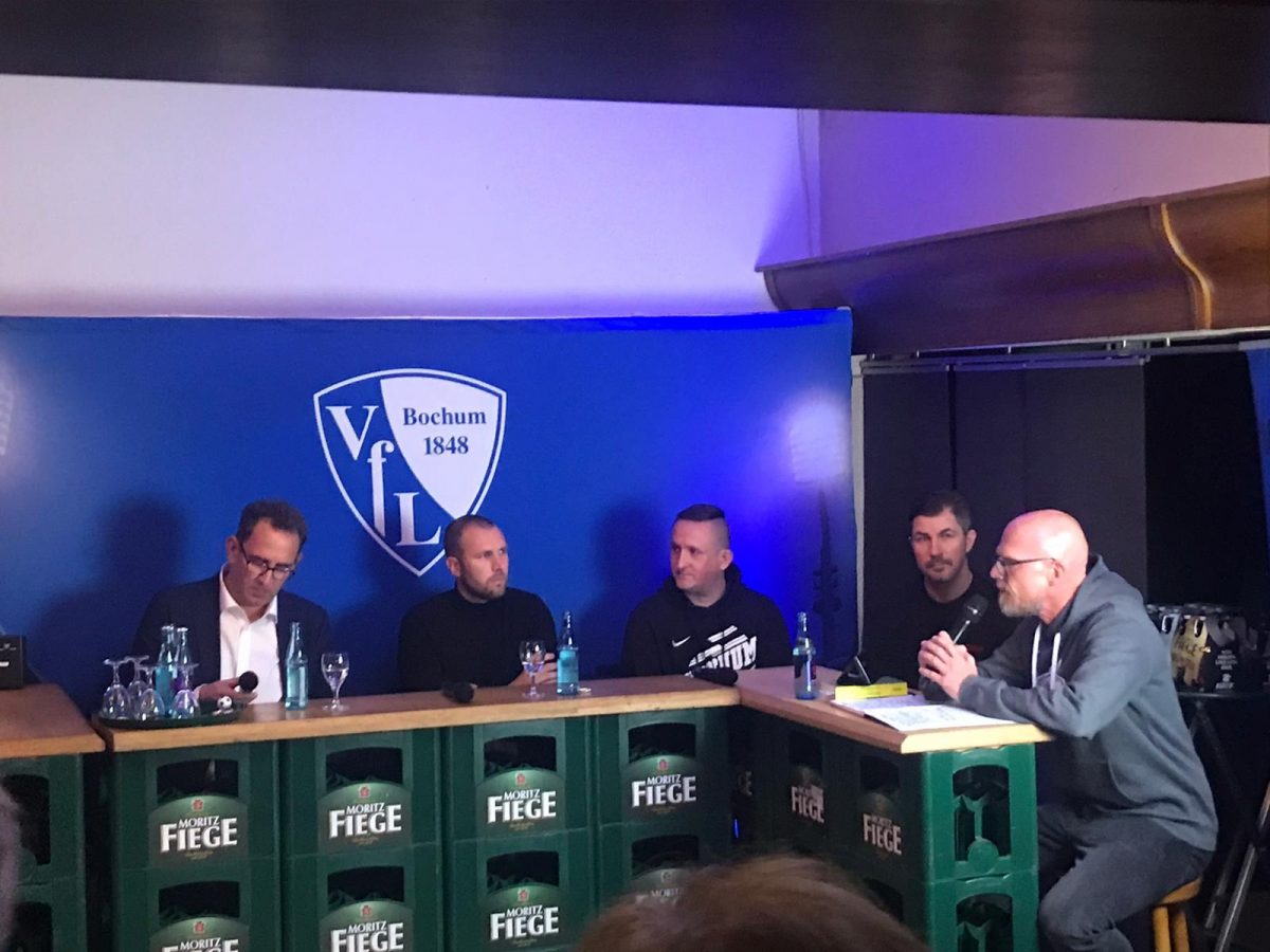Die Einladung zur 4. Auflage des Fanabends war für mich eine große Ehre. Ich durfte den knapp 80 Zuhörern in der Bochumer Gaststätte „Zum Lindenhof“ nicht nur mein Projekt „Henning Loves Football“ vorstellen, sondern auch den Geschichten der weiteren hochkarätigen Gäste lauschen. Ich muss schon sagen, dass man sich neben Gästen wie Kai Michalke (158 Bundesliga-Spiele, 10 mal UEFA Champions League), Marc-Andre Kruska (98 Bundesliga-Spiele, 206 mal 2. Bundesliga) und Alexander Richter (Leiter des Bochumer Talentwerkes) in Bezug auf die eigene fussballerische Vita zunächst einmal etwas verloren vorkommt. Diese Art Lampenfieber war allerdings völlig unbegründet, da alle drei richtig nette und offene Typen sind. Nach perfekter Moderation von VfL-Pressesprecher Jens Fricke konnte ich die ein oder andere Anekdote aus größtenteils unbekannten Fußballwelten wie Gibraltar, Wales oder Bulgarien zum Besten bringen. Ein richtig schöner Abend in angenehmer Atmosphäre, besser geht es fast nicht!