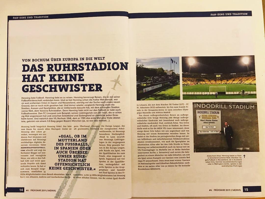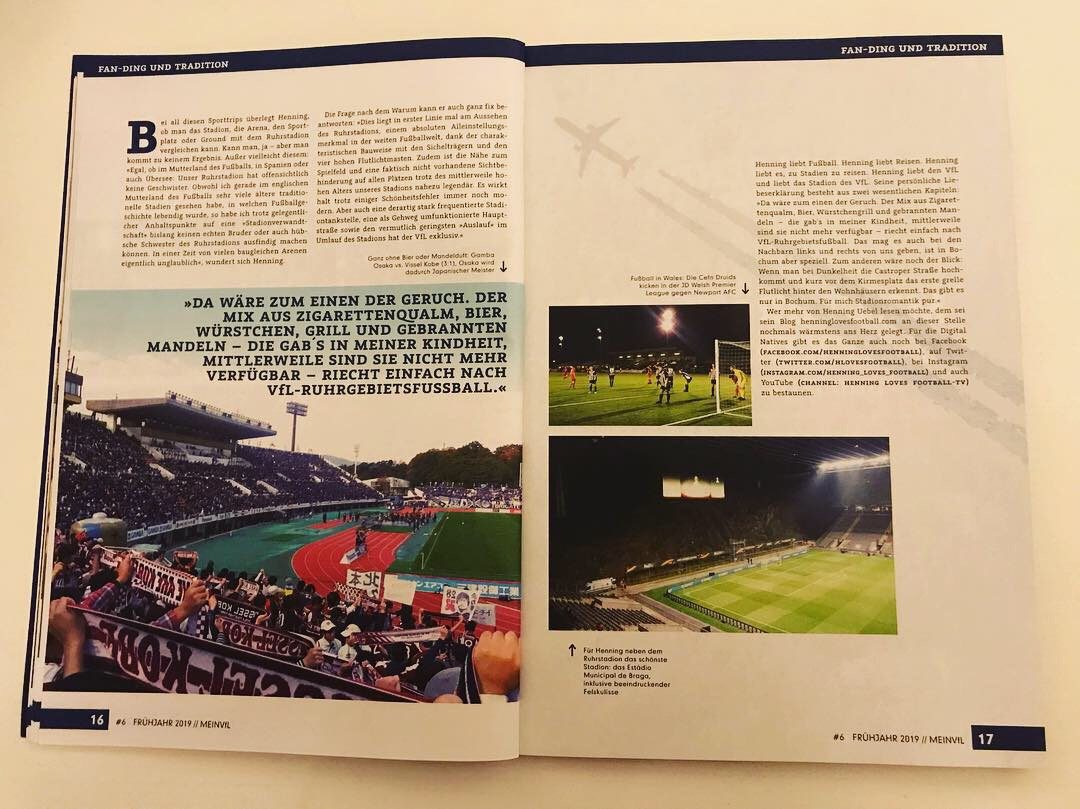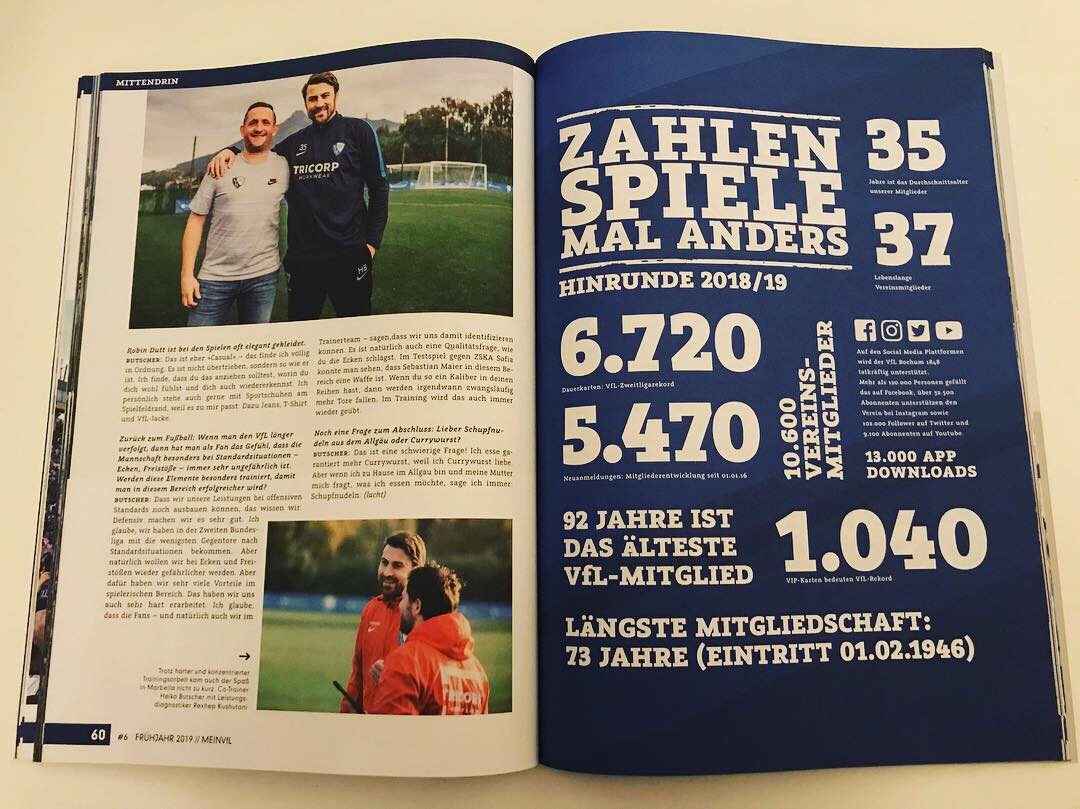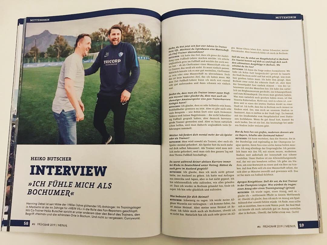 Im Winter-Trainingslager 2019 konnte ich zunächst den aktuellen Co-Trainer des VfL, den ehemaligen Abwehrspieler Heiko Butscher, mit sportlichen aber auch privaten Fragen löchern. Ein wirklich schöner Abend in lockerer Atmosphäre und einer Flasche Corona…wer hätte gedacht, dass dieses Bier mal so berühmt bzw. berüchtigt wird! Das Interview erschien in der Folge in der Print-Ausgabe des VfL-Magazins „Mein VfL“. Zudem berichtete die Redaktion auf zwei Seiten über mein Leben als VfL-Groundhopper! Ich war und bin immer noch sehr stolz, was besseres kann einem als VfL-Fan und Fußballblogger eigentlich nicht passieren!
