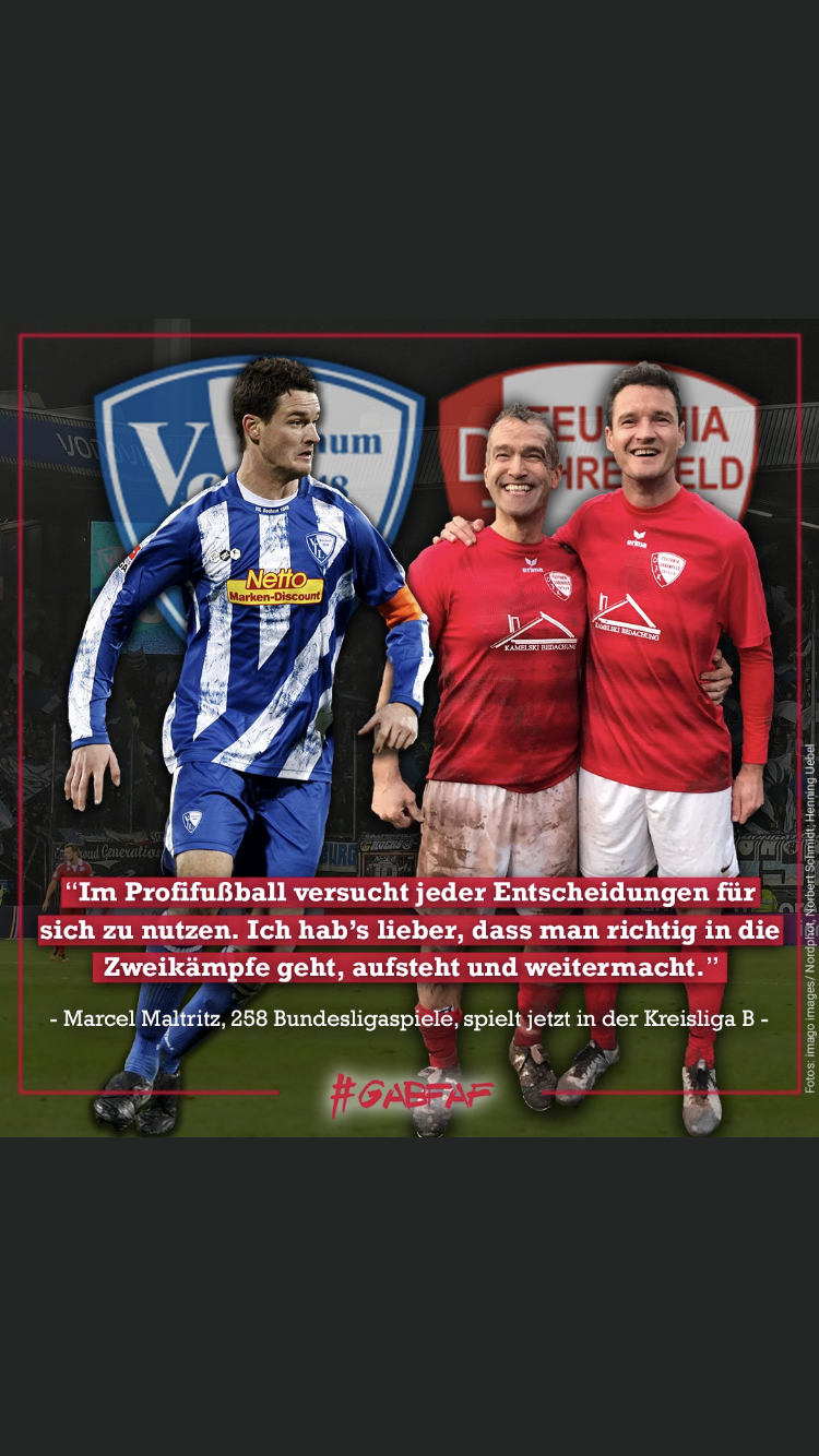 Im Rahmen dieser Tätigkeit interviewte ich im vergangenen Jahr den langjährigen Bochumer Innenverteidiger Marcel Maltritz, Mitglied der Bochumer Legenden-Elf, zu seinem „neuen Leben“ als Amateurfussballer beim Bochumer Kreisligisten DJK Teutonia Ehrenfeld. Ein wirklich launiger und interessanter Abend mit einem sehr sympathischen Menschen. Das Interview erschien übrigens bundesweit in den Medien des Redaktionsnetzwerkes Deutschland…eine Tatsache, die mich ebenfalls sehr stolz macht!